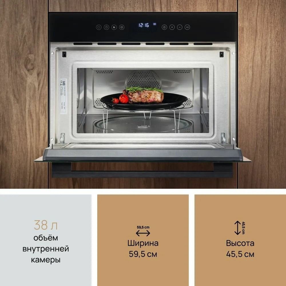 Встраиваемые микроволновые печи Встраиваемая микроволновая печь VARD VMC355HK с функцией компактного духового шкафа, 38 л, 8 режимов приготовления, гриль, 5 автоматических программ, блокировка от детей, черный