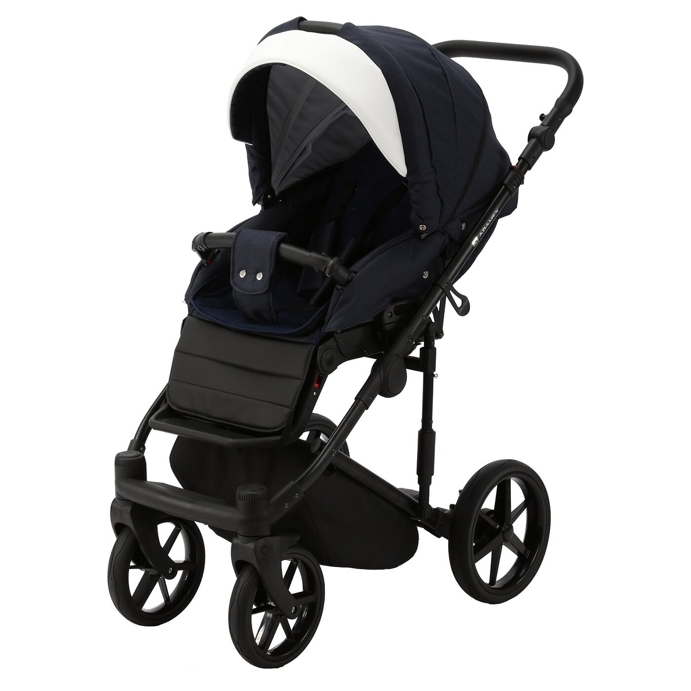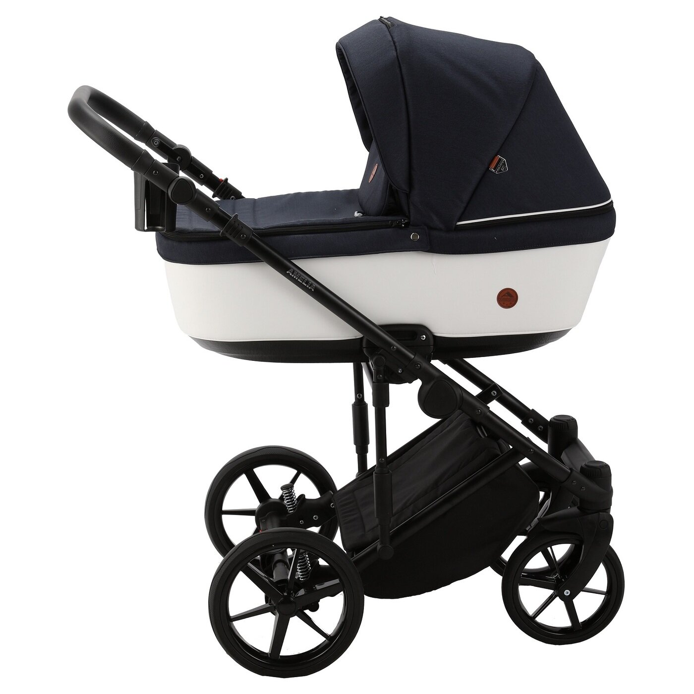 Коляска Коляска универсальная Adamex Amelia 2 в 1, AM240 - темно-синяя, белая кожа