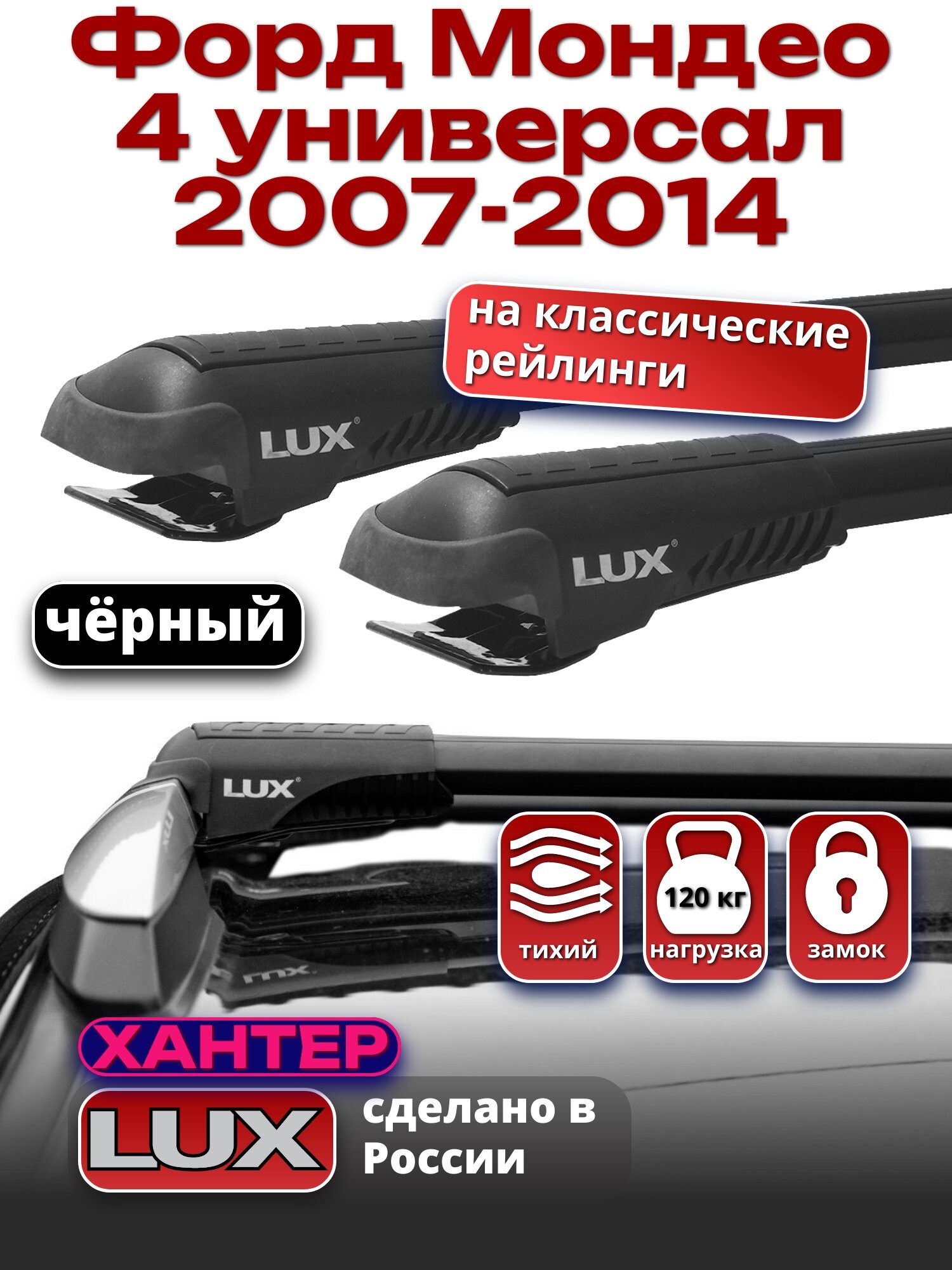 Багажник Багажник на крышу Форд Мондео 4 универсал 2007-2014 на рейлинги, черный, LUX хантер