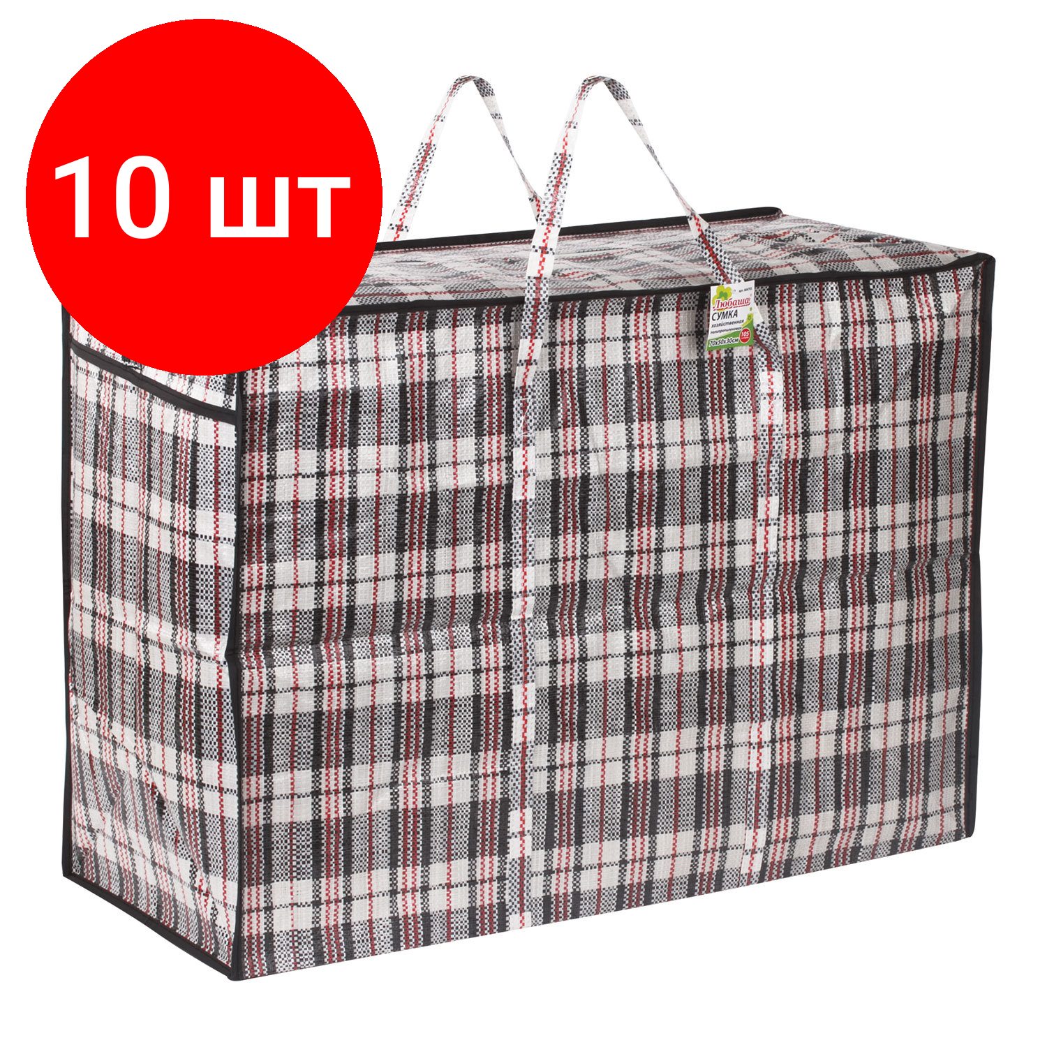 Комплект 10 шт, Сумка-баул хозяйственная, полипропилен, 70х50х30 см,105 литров, черно-красная, 170 г/м2, любаша, 604703 5 867 ₽ Подробнее