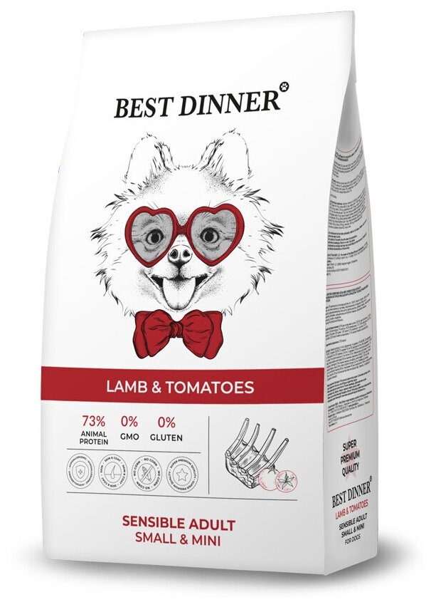 Best Dinner Adult Sensible Mini Lamb & Tomatoes сухой корм для собак мелких пород склонных к аллергии и проблемам с пищеварением с ягненком и томатами - 1,5 кг