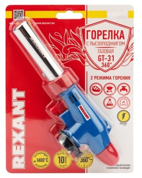 Горелка-насадка газовая GT-31 360град. с пьезоподжигом Rexant 12-0031 rs-12-0031