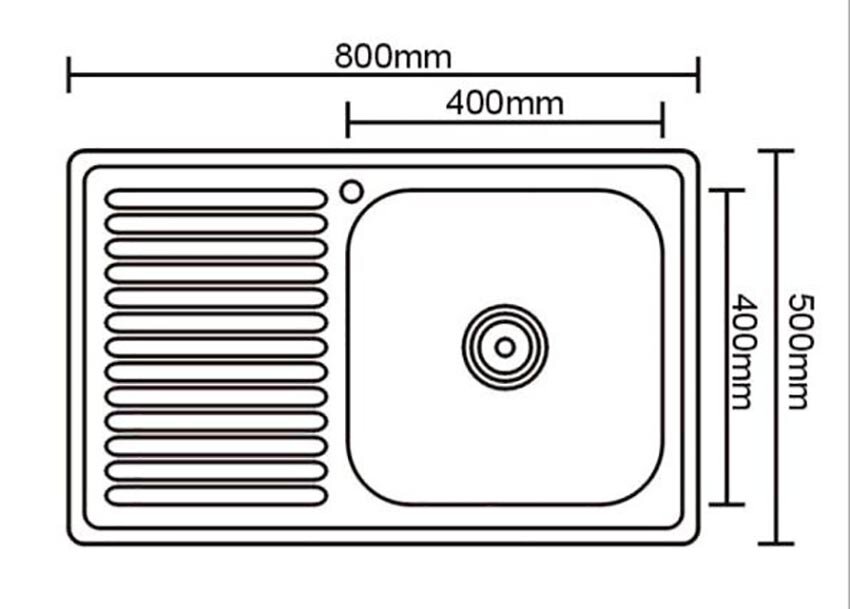 Кухонная мойка Мойка кухонная накладная нержавеющая сталь прямоугольная 80х50 см. SINKLIGHT N 8050 R 0.8/180 1P правая полированная