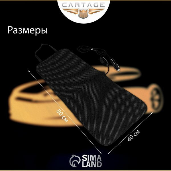 Подогрев сидений Cartage, со спинкой, без регулятора, 12 В, 50 Вт, 40х80 см, греющий жгут - нити Mic .