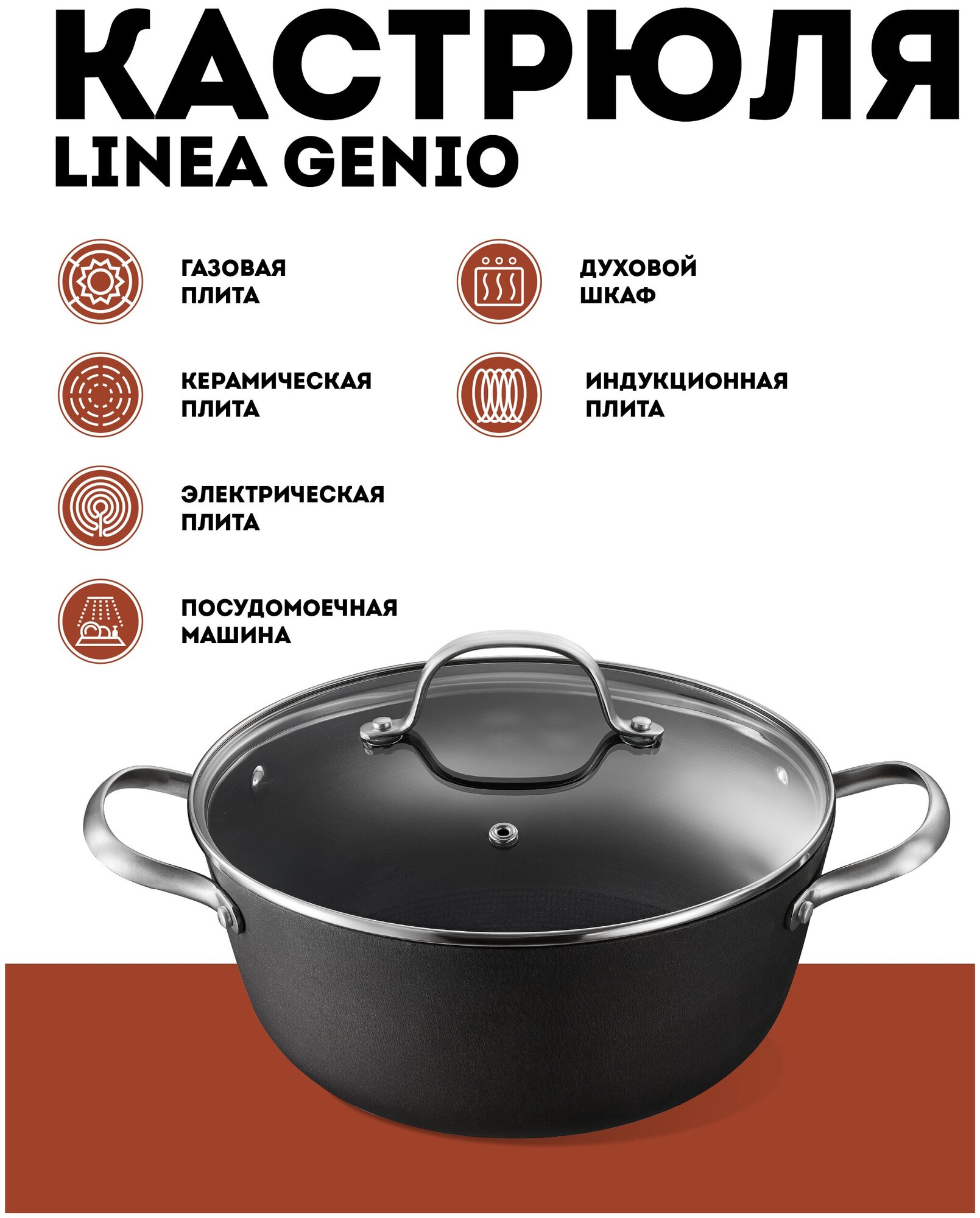 Кастрюли Кастрюля чугун Regent 24х11см 4 л. Linea Genio 93-FE-GE-4-24 24х11см 4 л. Linea Genio чугун