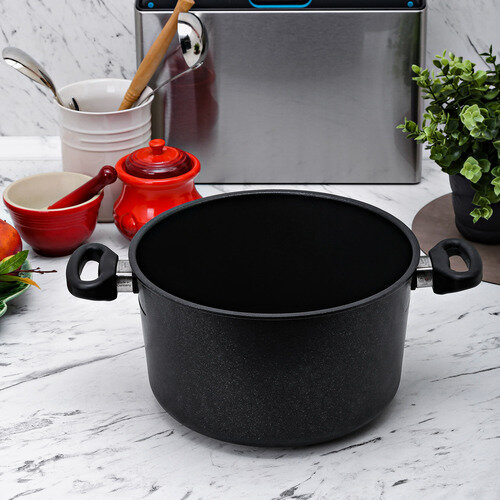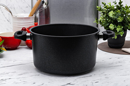 Кастрюля Алюминиевая кастрюля с антипригарным покрытием для индукционных плит, 26 см, 6.5 л, черный, серия Кастрюли и ковши, AMT Gastroguss, AMT I-926