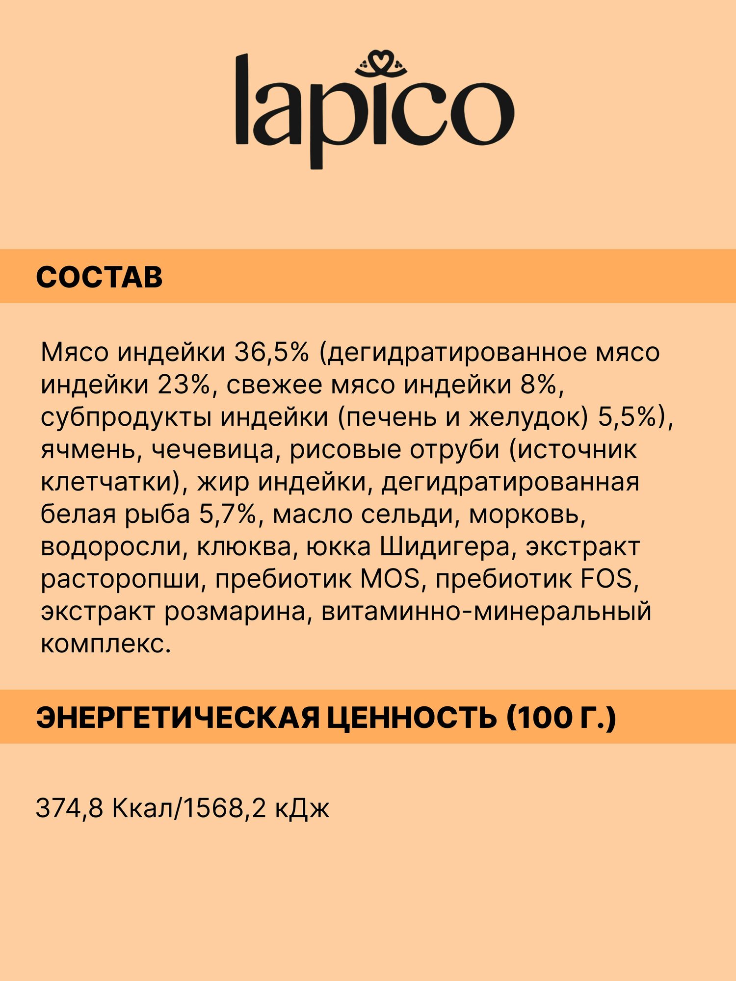 Корм сухой "Lapico" Supreme (Лапико) для собак мелких пород, индейка, 8кг, содержание мяса 36,5%