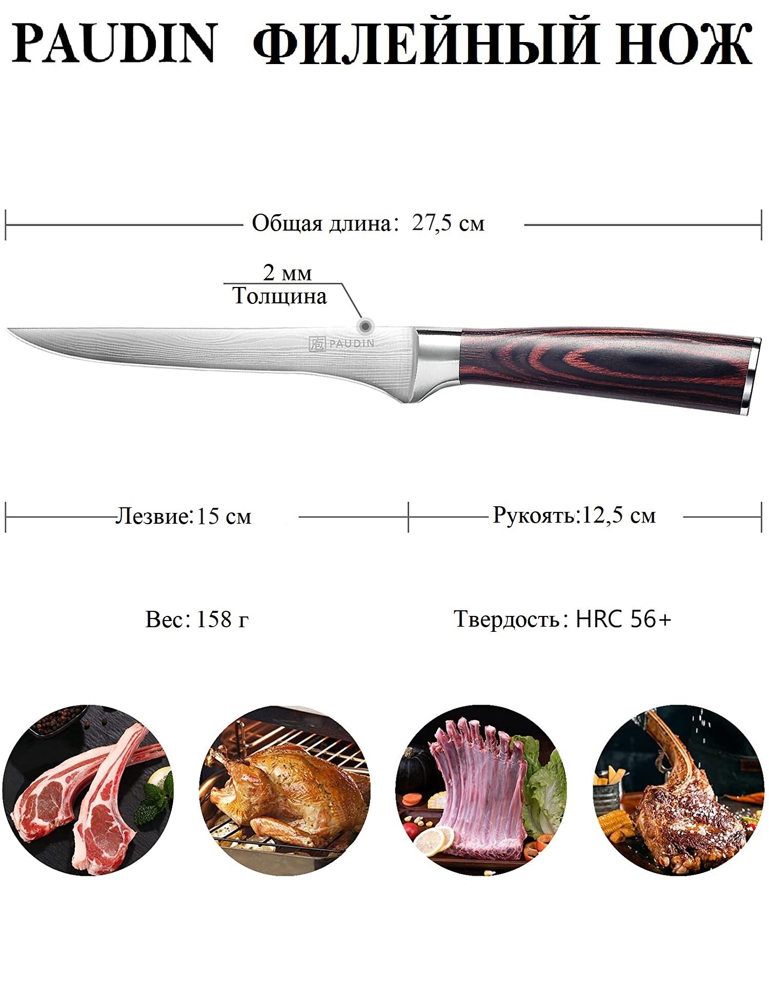 Кухонные ножи Нож кухонный профессиональный филейный для удаления костей из мяса, птицы и рыбы лезвие 15 см Подарок на новоселье, юбилей или день рождения