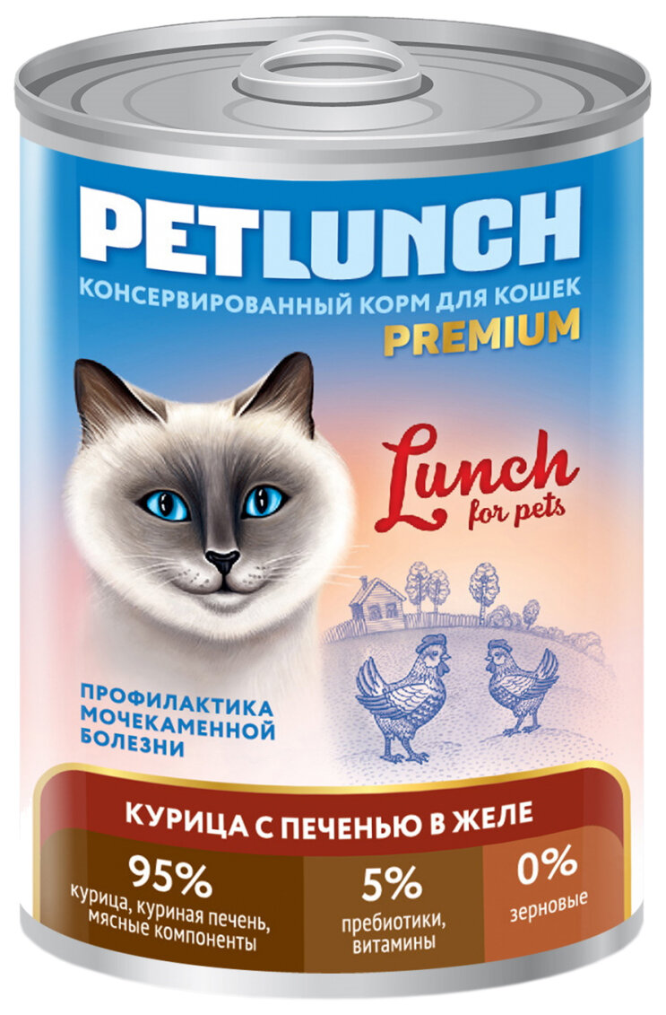 Корм для кошек Корм "Lunch for Pets" премиум для кошек, профилактика МКБ, курица с печенью в желе, 400гр*9штук