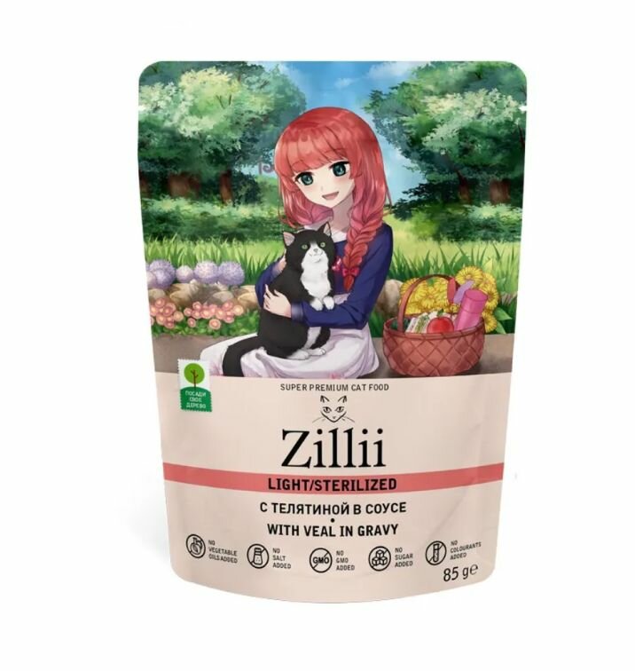 Корм для кошек стерилизованных влажный, ZILLII (Зиллии) Sterilized/Light (пауч) 12шт - 85г, Телятина в соусе 1 030 ₽ Подробнее