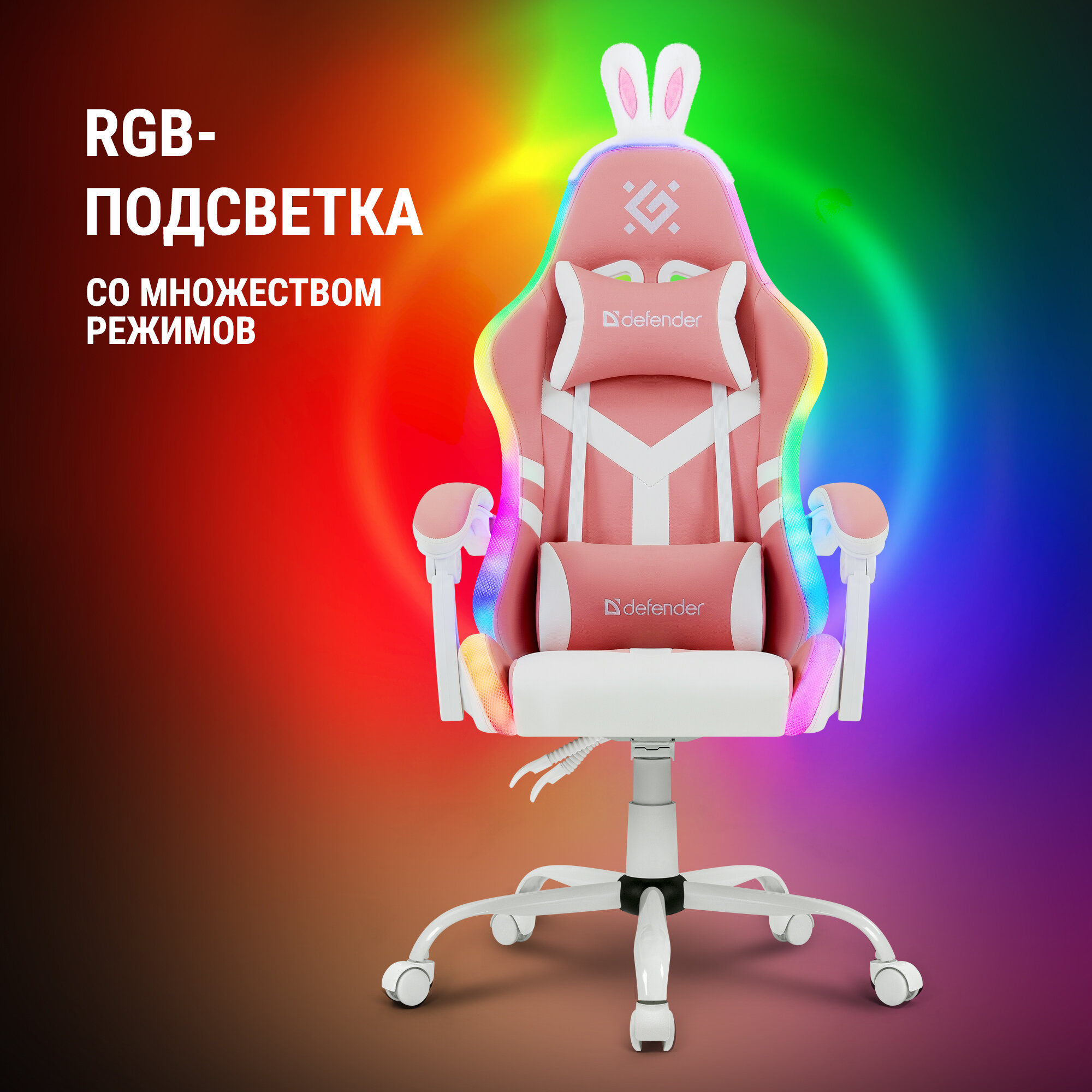 Игровое кресло / компьютерное кресло Defender Watcher белый, RGB подсветка + пульт, полиуретан, 2 подушки и подставка для ног 13 400 ₽ Подробнее