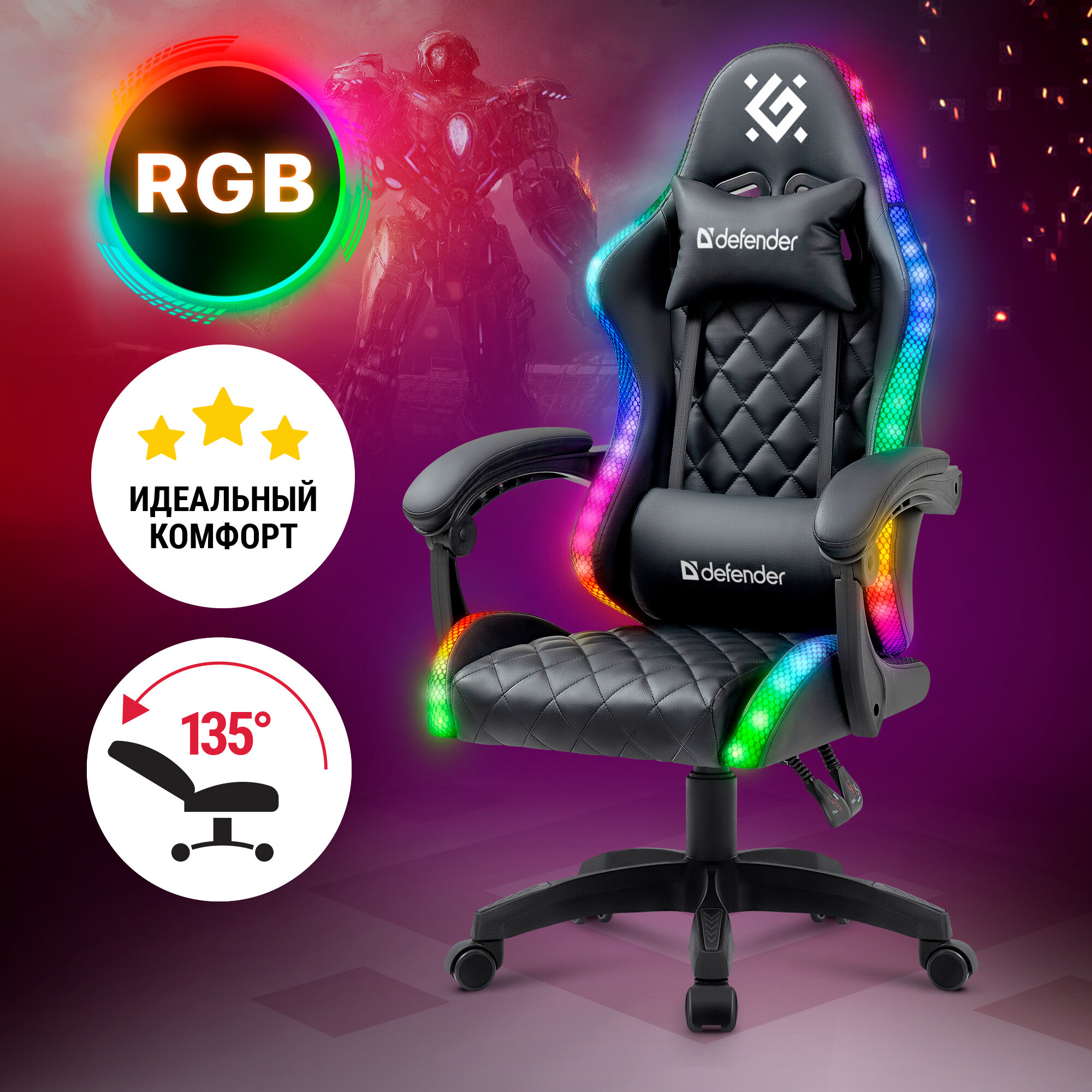 Компьютерные кресла Игровое кресло Defender "Energy", экокожа, с RGB-подсветкой, до 110кг