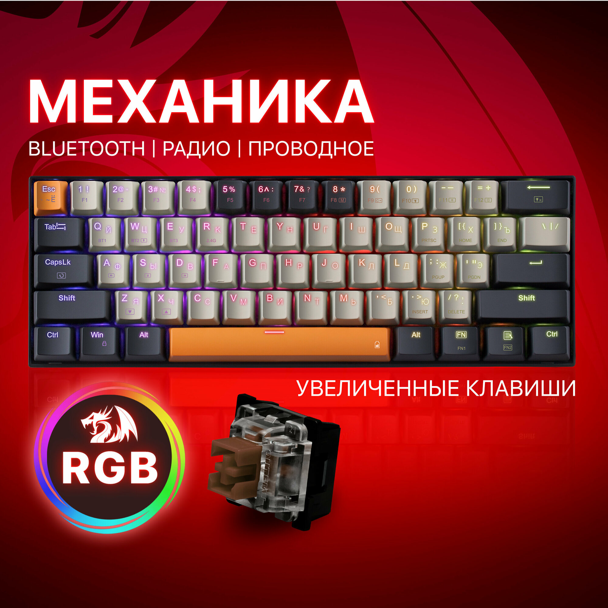 Игровая клавиатура механическая Redragon Fizz Радужная тихая, черно-красная компактная (60%) 2 308 ₽ Подробнее