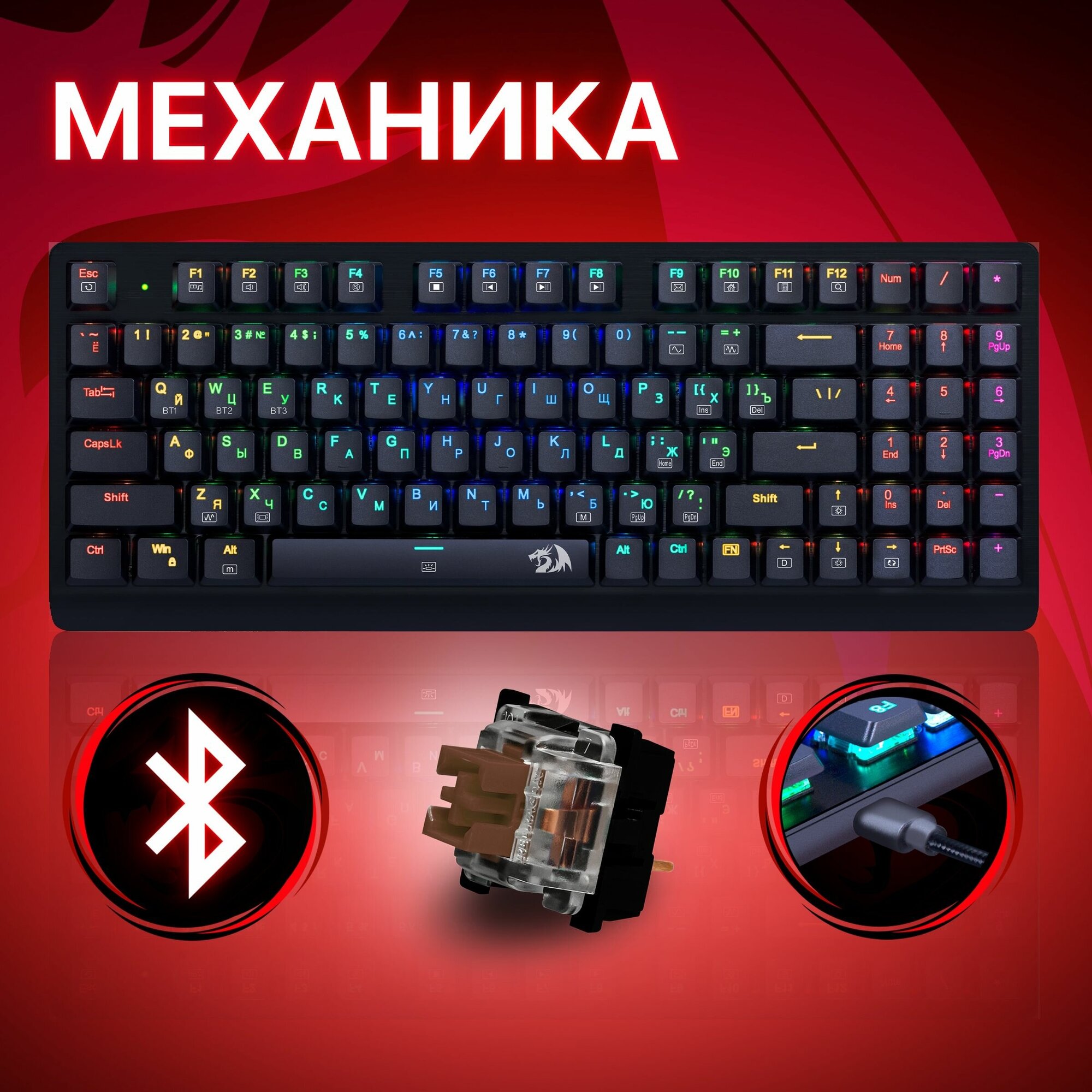 Игровая клавиатура механическая Redragon Fizz Радужная тихая, черно-красная компактная (60%) 2 308 ₽ Подробнее