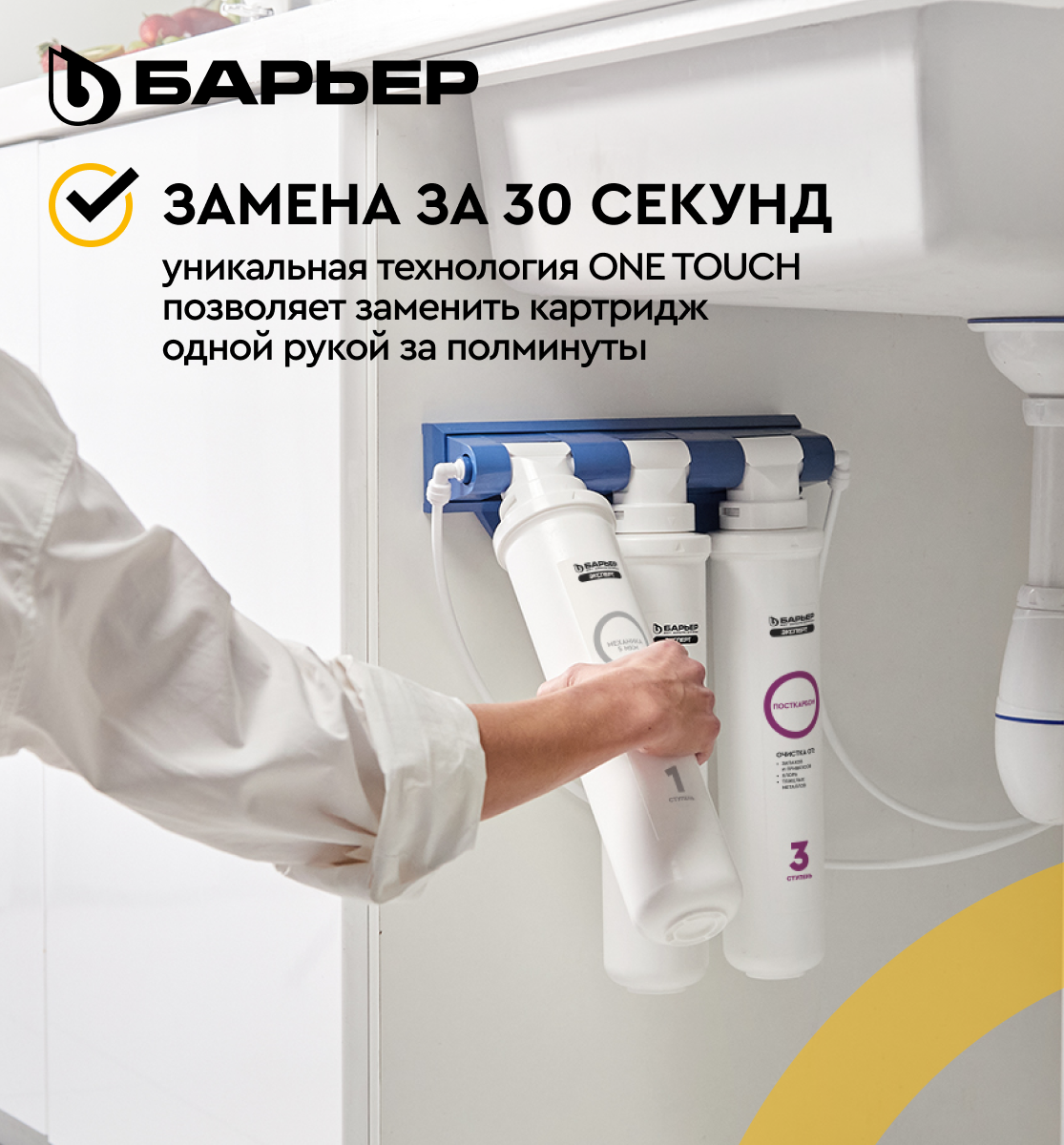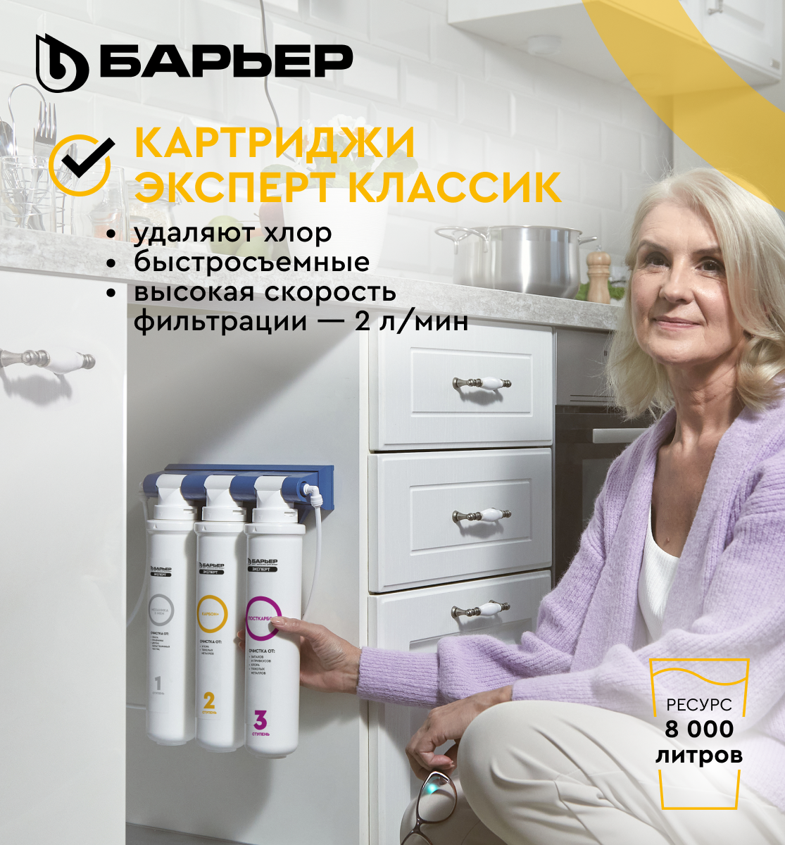 Картриджи для воды БАРЬЕР Эксперт Классик, картриджи для фильтра под мойку, быстросъемный