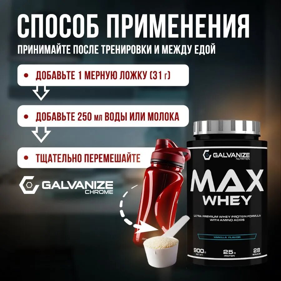 Протеин Протеин сывороточный GALVANIZE Nutrition Max Whey, Ваниль, 900 г