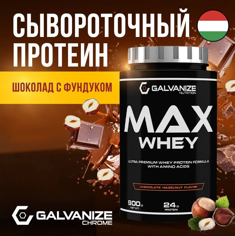 Протеин Протеин сывороточный GALVANIZE Nutrition Max Whey, Шоколад-фундук, 900 г