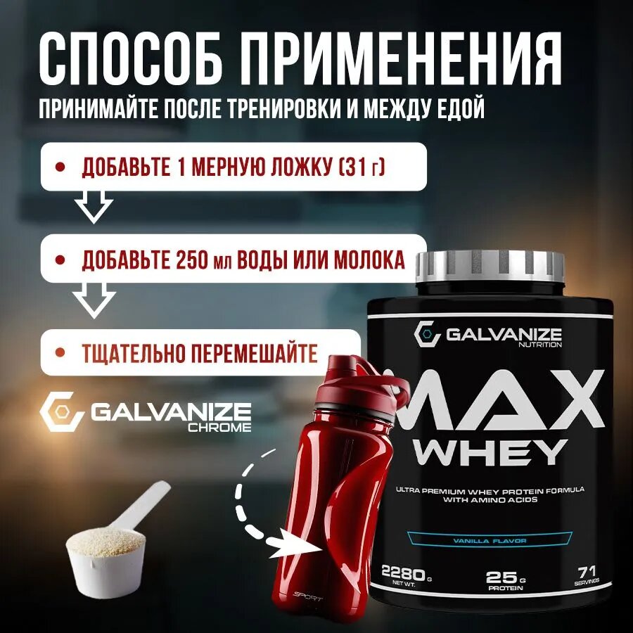 Протеин Протеин сывороточный GALVANIZE Nutrition Max Whey, Ваниль, 2280 г