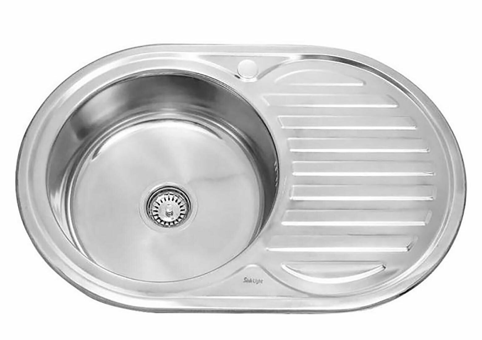 Кухонные мойки Мойка кухонная из нержавеющей стали с крылом SinkLight 7750 L 0.8/180 1E врезная, 77x50см, матовая, овальная