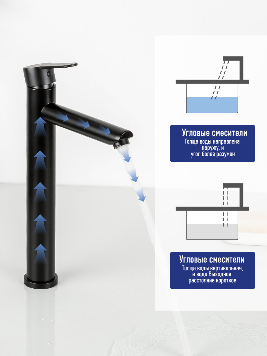 FRAP F10801-62, Смеситель для раковины высокий, нержавеющая сталь SUS304, черный