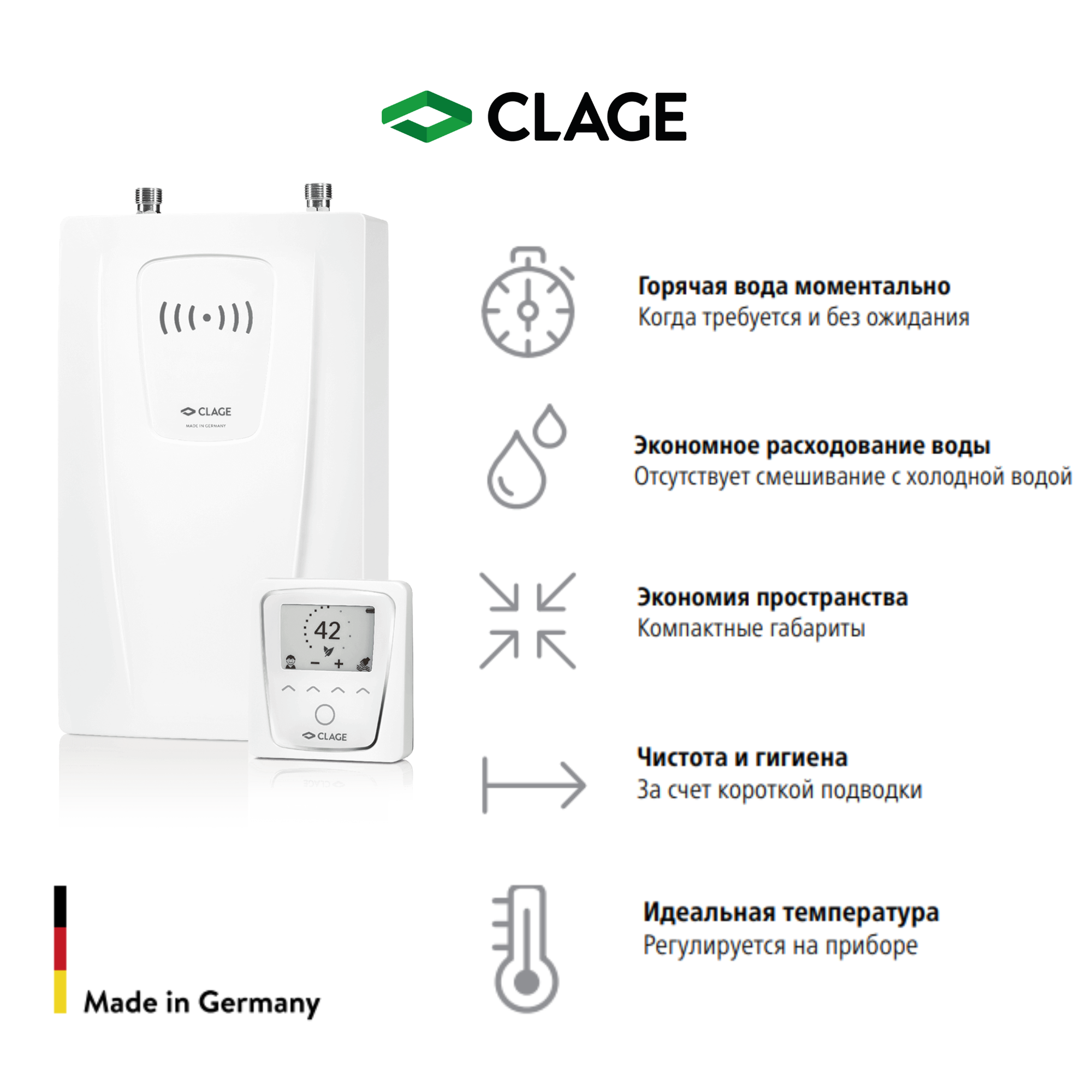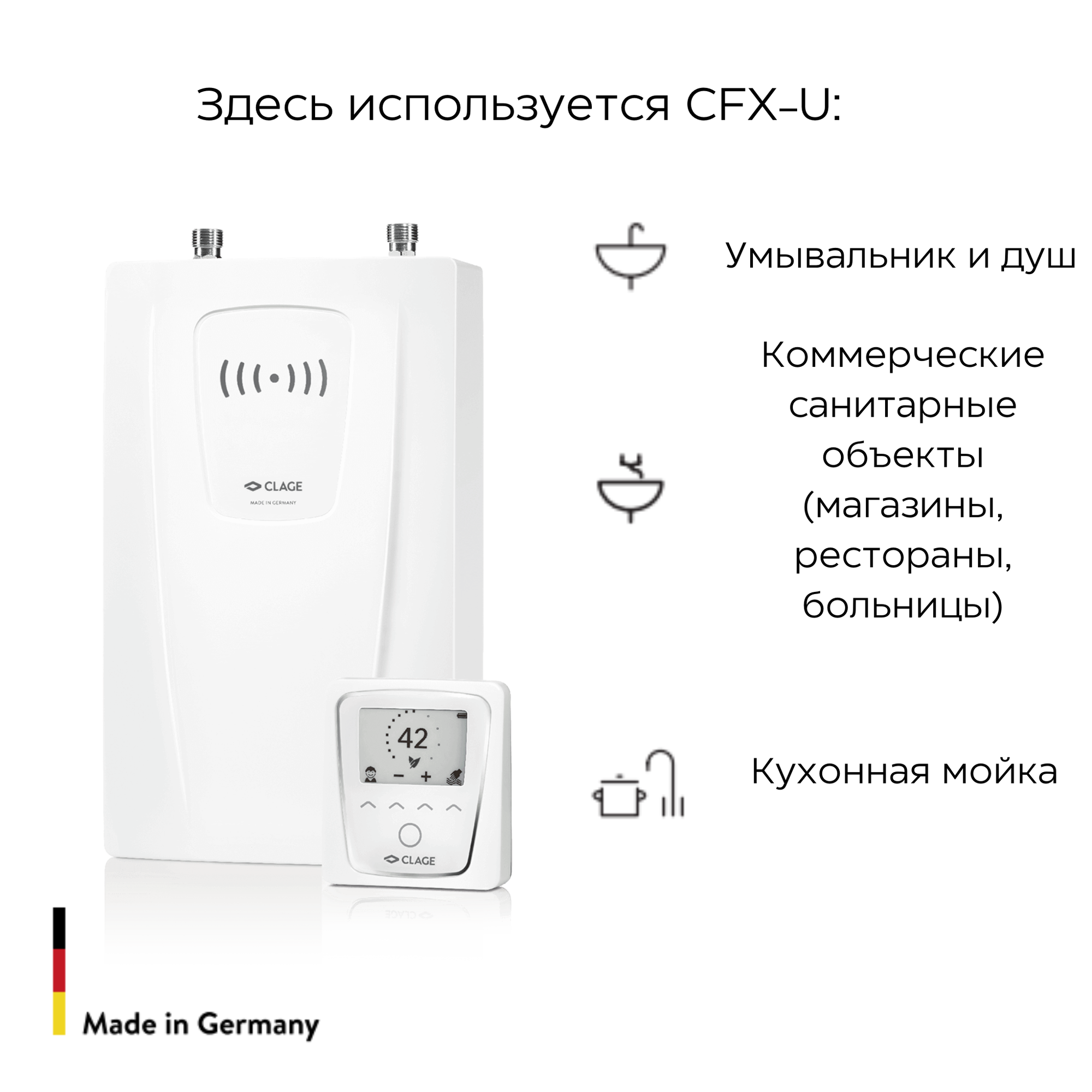 Водонагреватель Водонагреватель проточный CLAGE CFX-U, электронный, настенный, с пультом, 11/13,5кВт, верхняя подводка, 380В