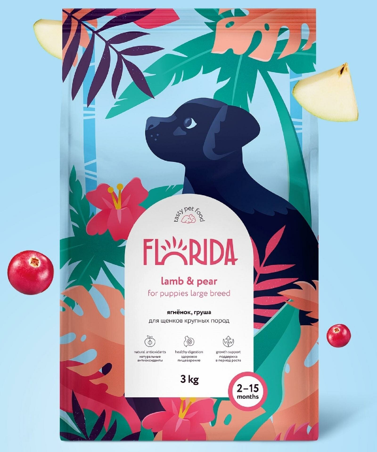 FLORIDA сухой корм для щенков крупных пород с ягненком и грушей (3 кг)