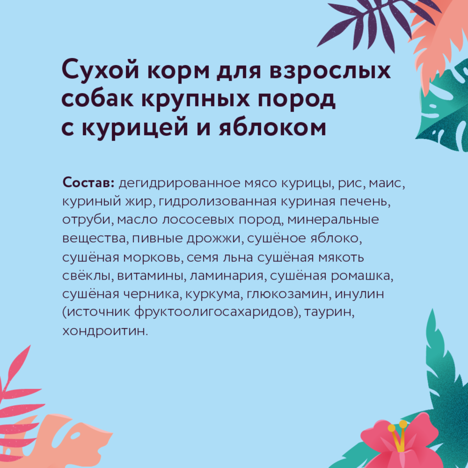 Сухой корм для взрослых собак крупных пород, с курицей и яблоком