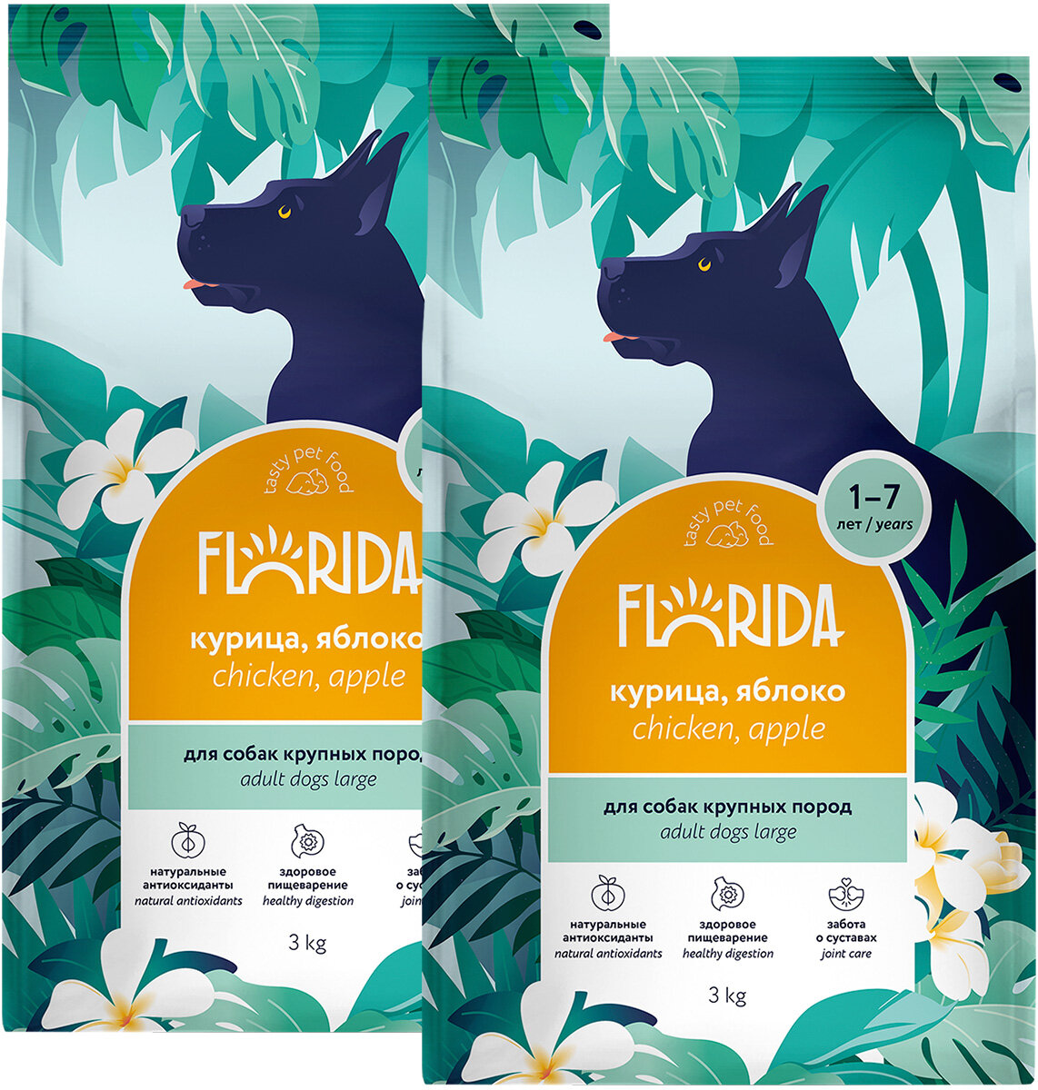 Корм для собак FLORIDA для взрослых собак крупных пород с курицей и яблоком (3 + 3 кг)