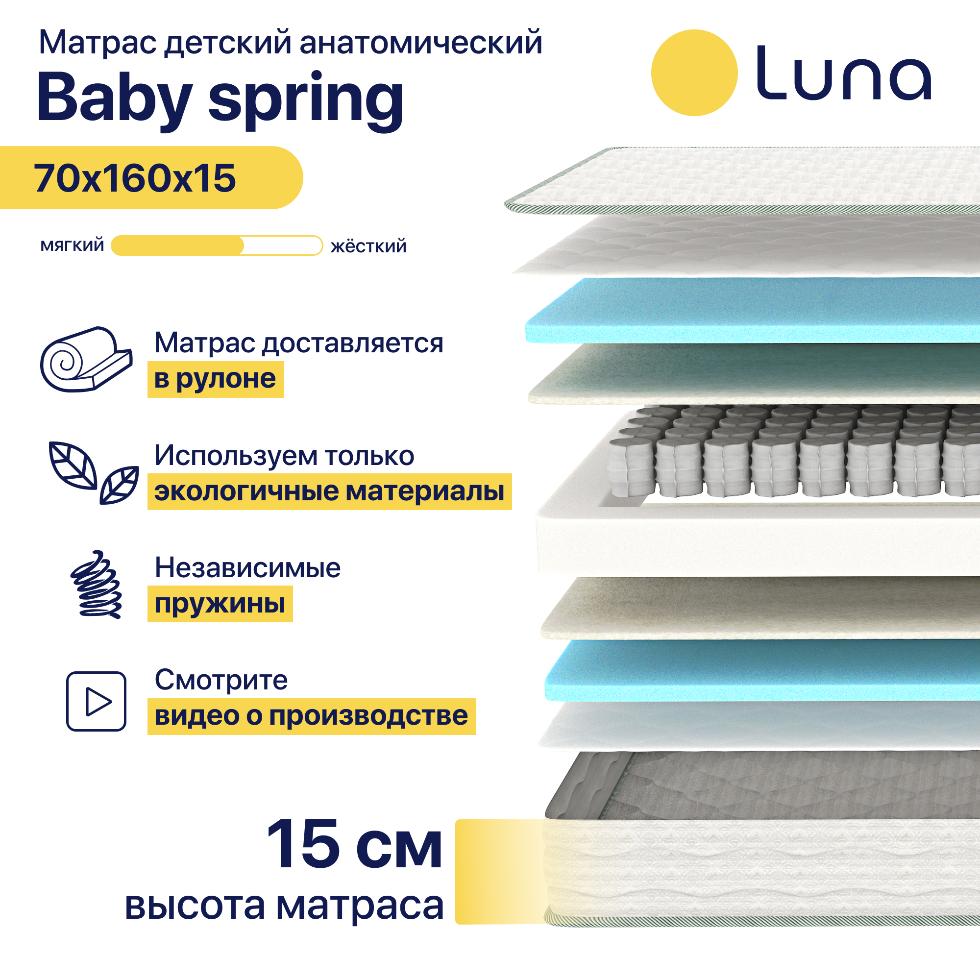 Матрасы Детский матрас Luna Baby Spring 70 х 160, высота 15 см