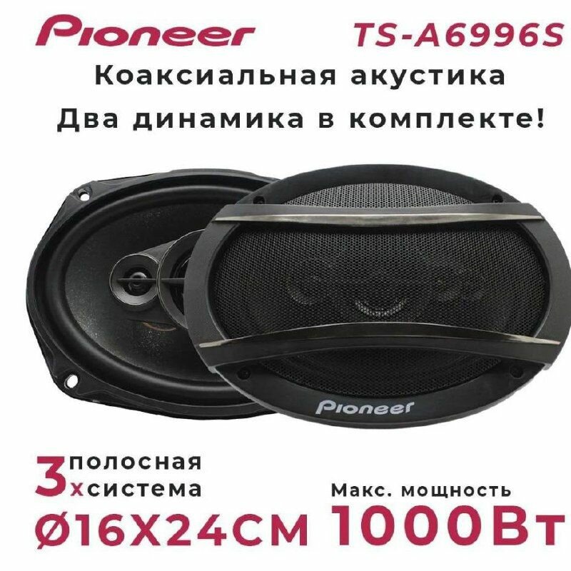 Автомобильные колонки Pioneer TS-A6996S / Автомобильные динамики / Коаксиальная акустика Пионер / 1200 Вт / 6X9.45 дюйм. / 16x24 см / Комплект 2 шт.