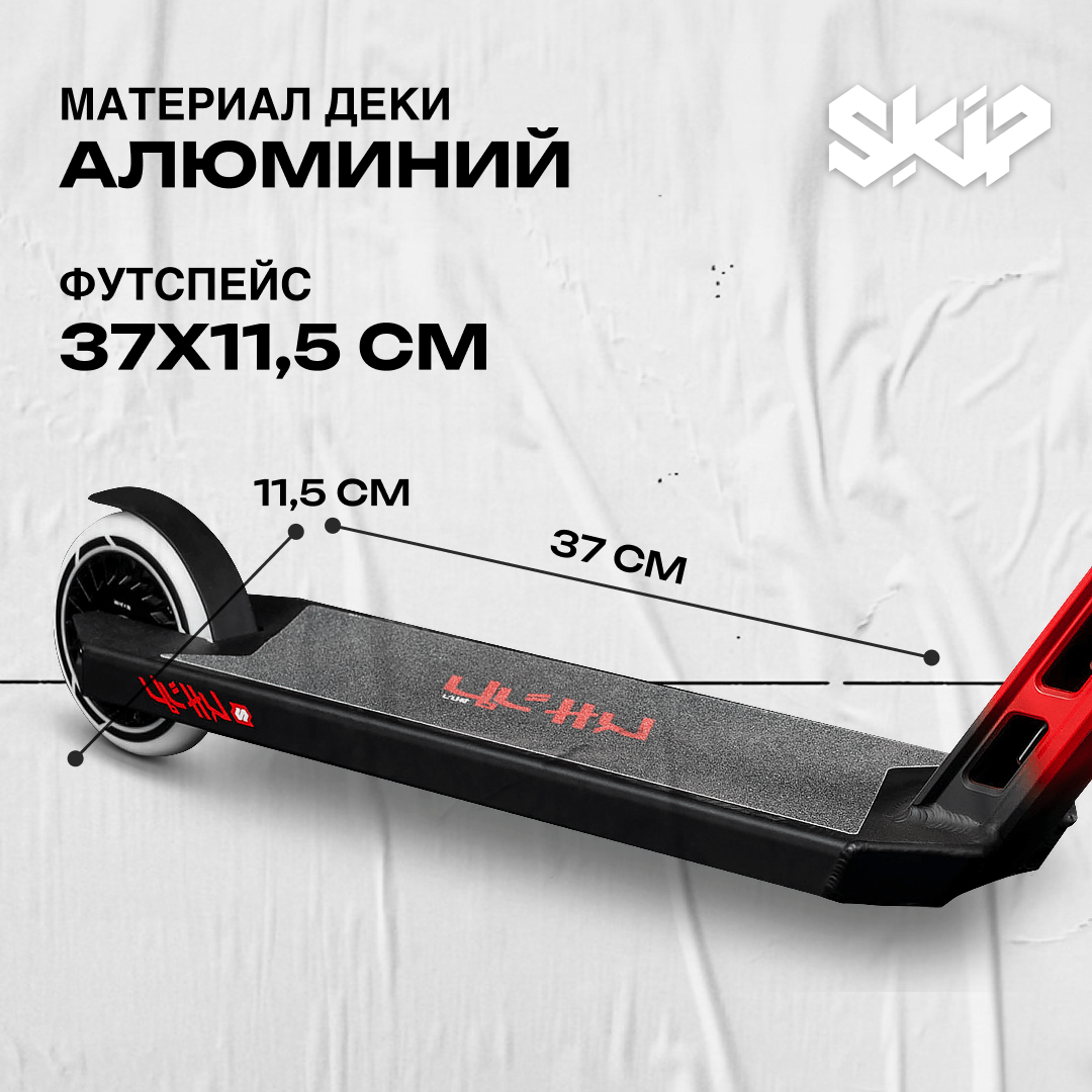 Самокаты Самокат SKIP SBN (2023) трюковой для взрослых, для детей, алюминиевая дека, черно-красный цвет, рост 165-175