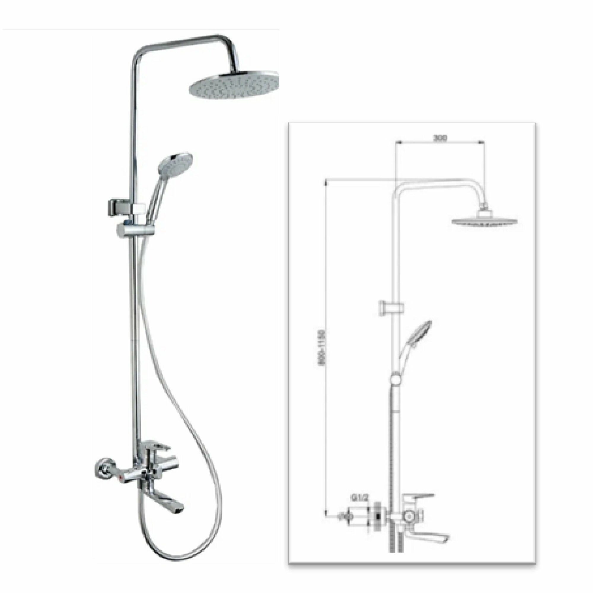 Душевые системы Смеситель ZEGOR PUD16-A045 стойка для ванной с тропическим душем серебристая