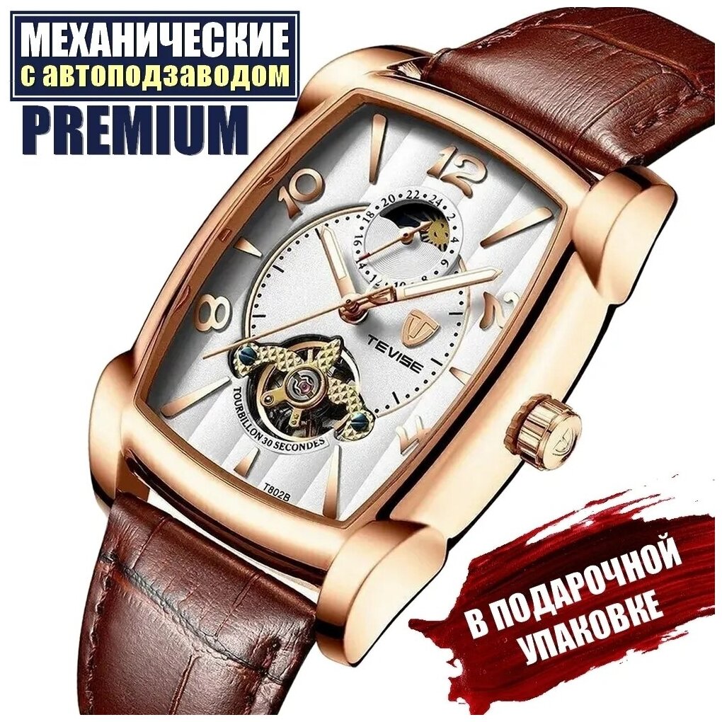 Часы наручные мужские механические с автоподзаводом золотисто-черные TEVISE. Отличный подарок !