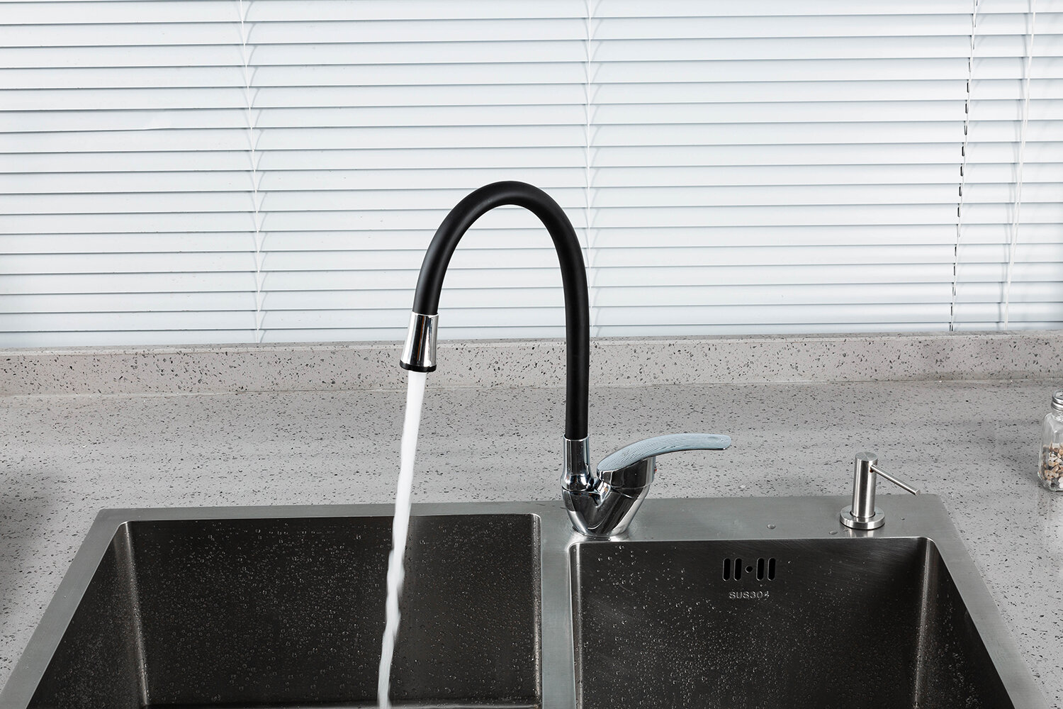 Смесители Смеситель для кухни с гибким изливом (мойки) Frud R055 R40055-2 хром/черный, на гайке