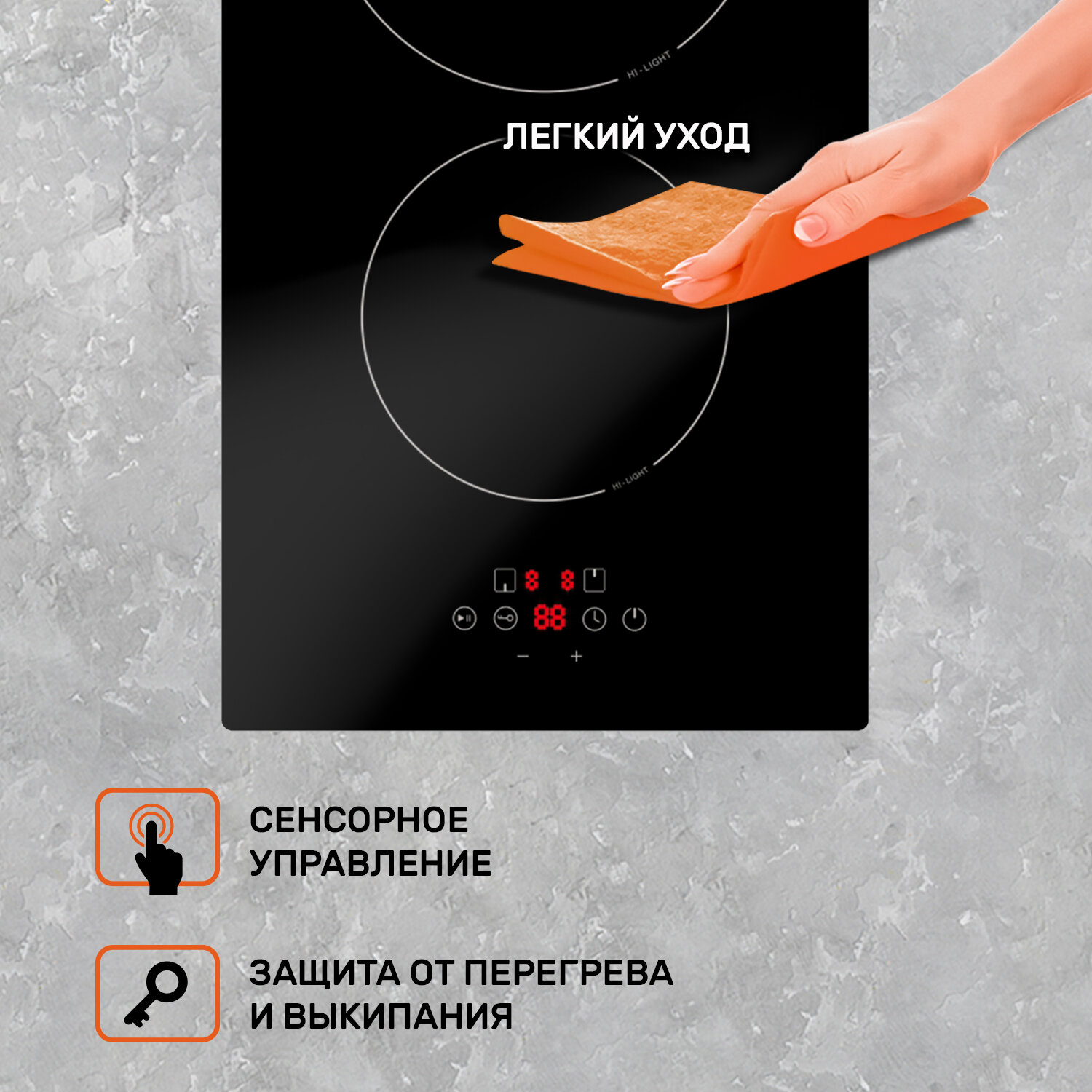 Электрическая варочная панель Hebermann HBKC 3020.1 BL; Защита от перегрева, Индикатор остаточного тепла, Кнопка блокировки панели,Отключение при выкипании, Функция Stop&Go; Таймер конфорок