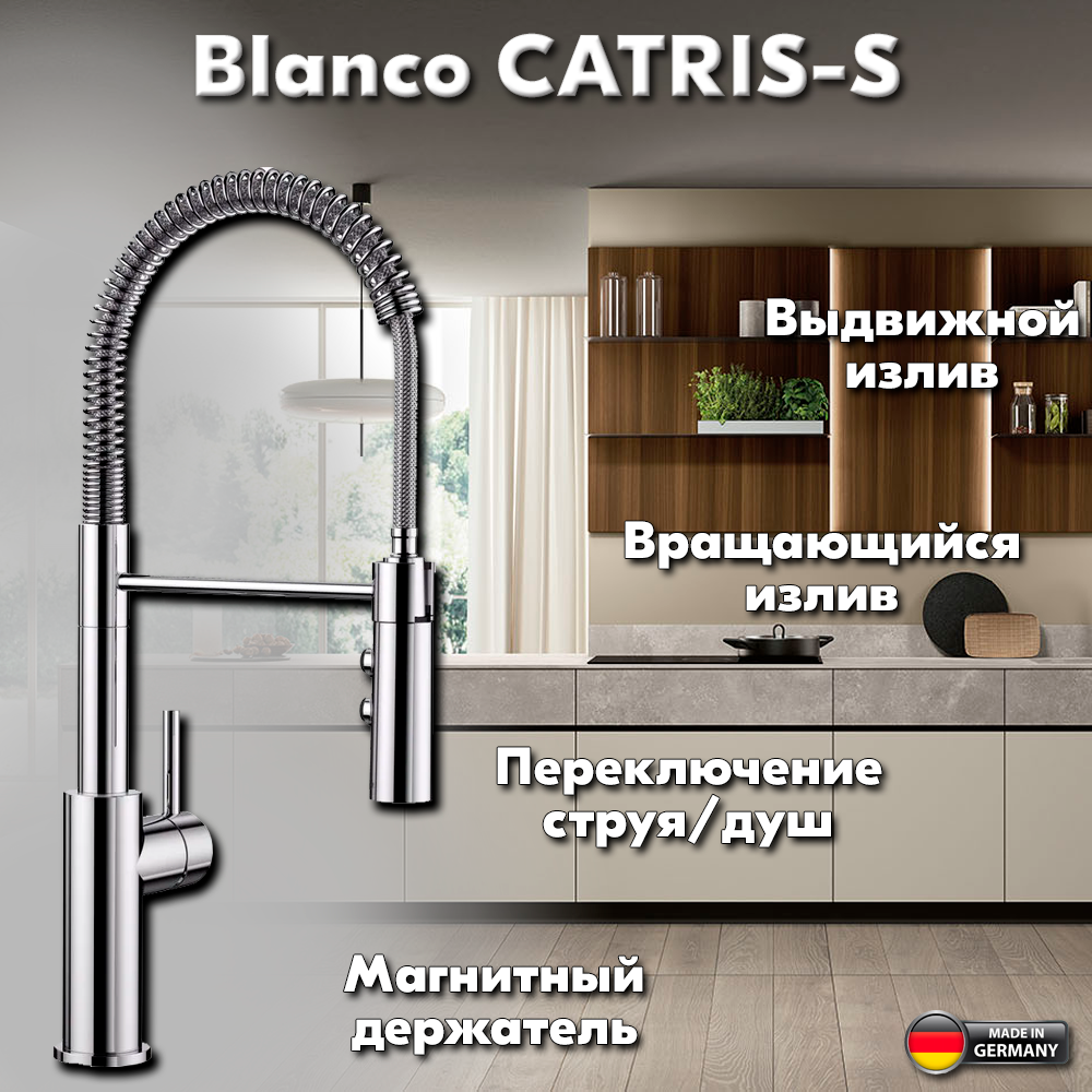 Смеситель Смеситель CATRIS-S Хром, Гибкая подводка, Аэратор, Защита от обратного тока воды, Лейка, Обратный клапан, Поворотный