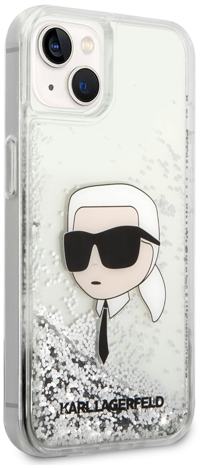Чехлы для мобильных телефонов Lagerfeld для iPhone 14 чехол Liquid glitter NFT Karl head Hard Silver