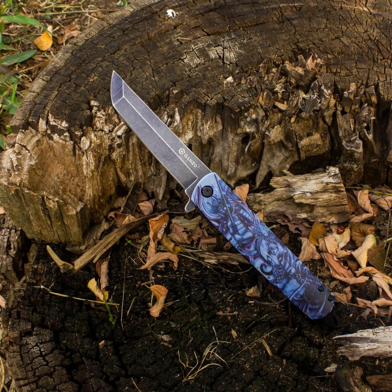 Ножи и мультитулы Ganzo G626-GS нож складной серый самурай, нержавейка, длина лезвия 9,6 см. клинок tanto, с принтом