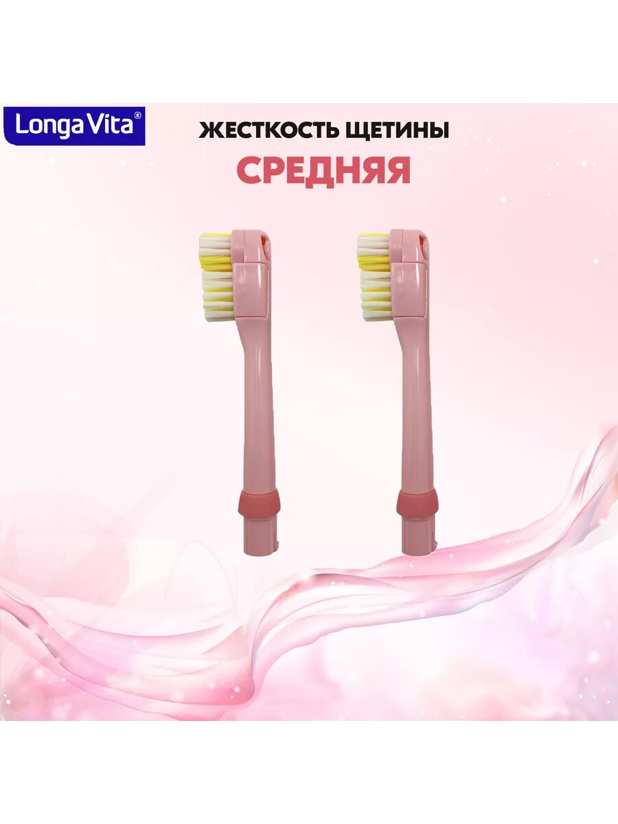 Насадки сменные для электрической зубной щётки Longa Vita, щетина средней жёсткости, розовая