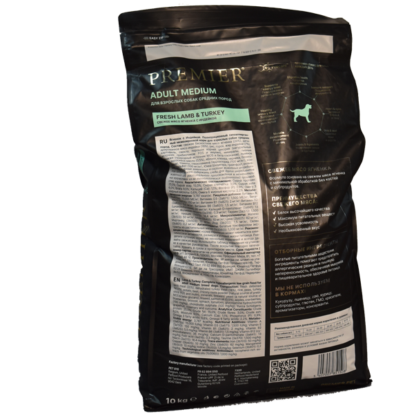 Сухой корм для собак средних пород Premier Dog Lamb&Turkey ADULT Medium, в составе: мясо ягненка с индейкой, вес корма: 10 кг (PR Adult Lamb Med 10)