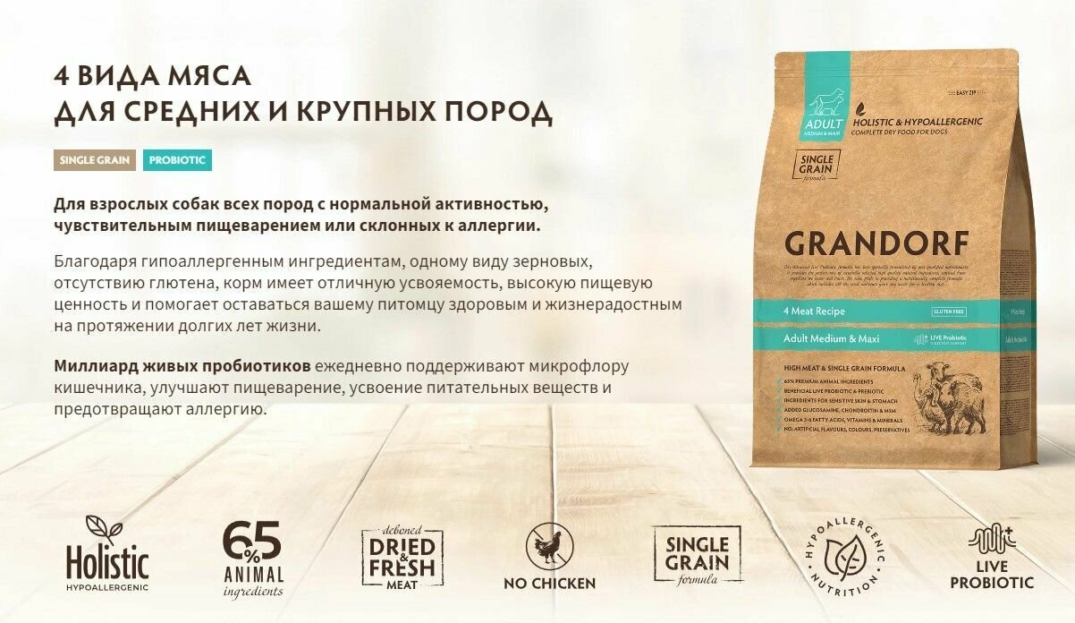 GRANDORF DOG 4 Meat PROBIOTIC MED&MAXI (4 мяса с пробиотиками для собак средних и крупных пород) (3 кг)