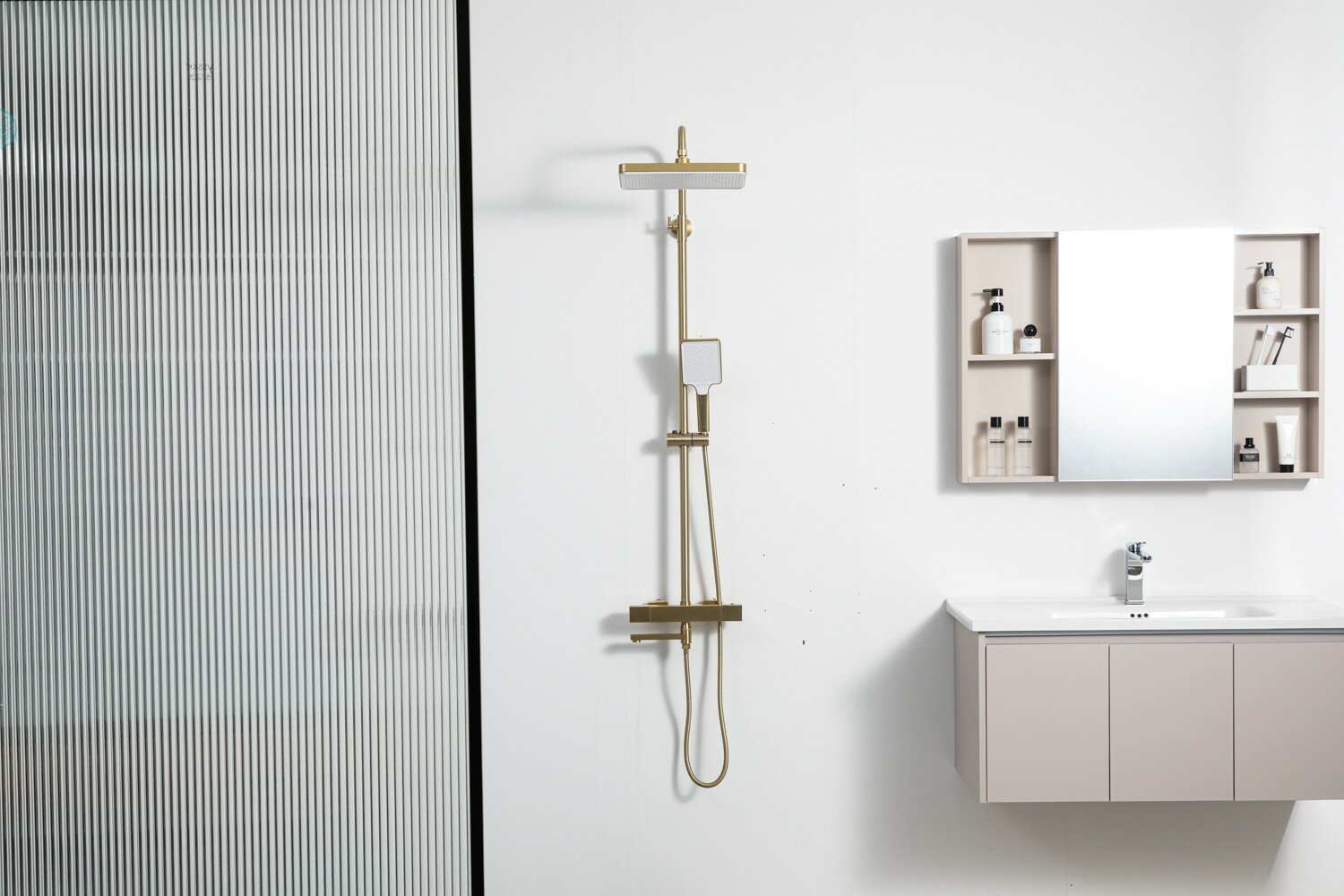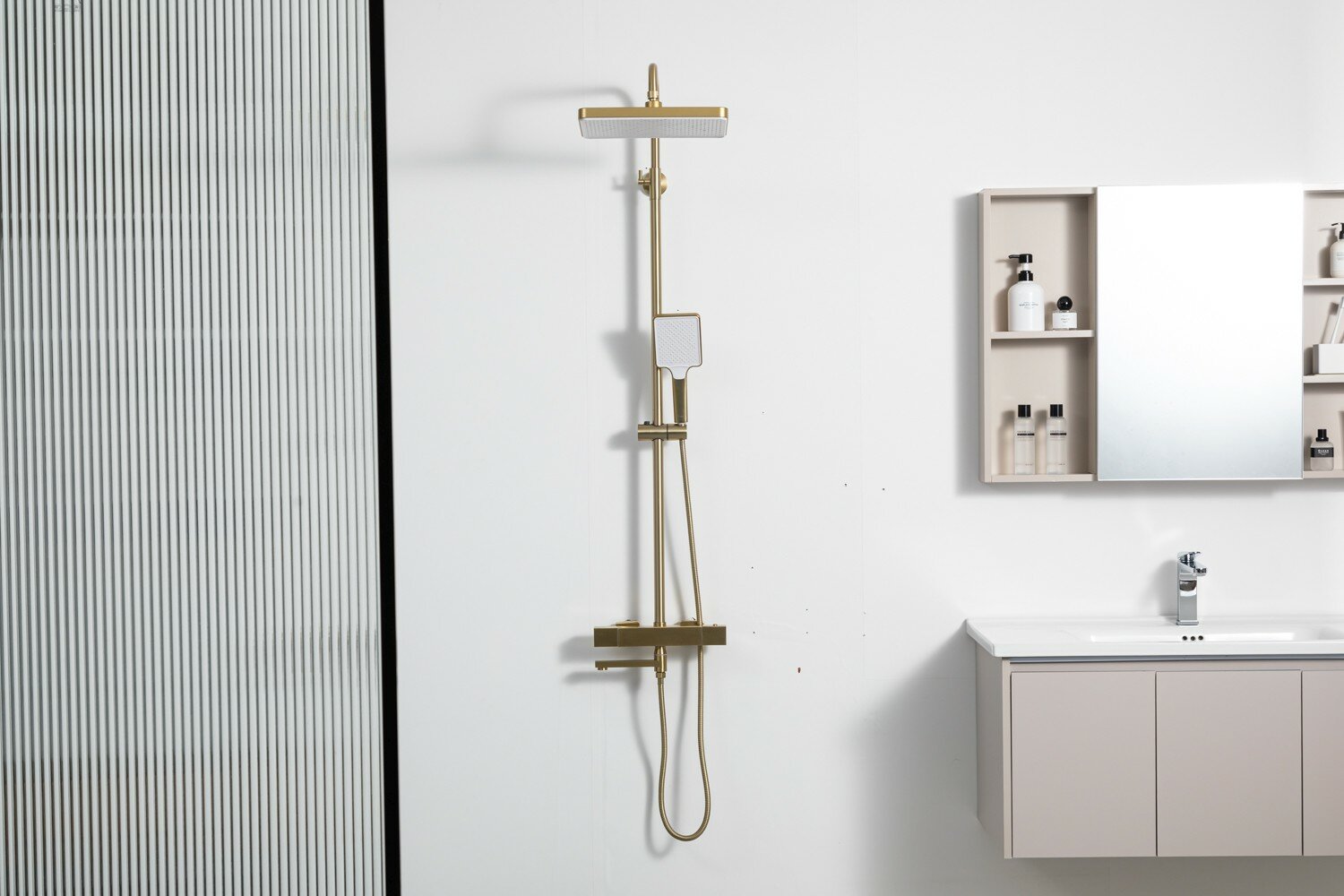 Душевые системы Душевая стойка для ванны FRAP F24007-3 с термостатом, золотой сатин, латунь