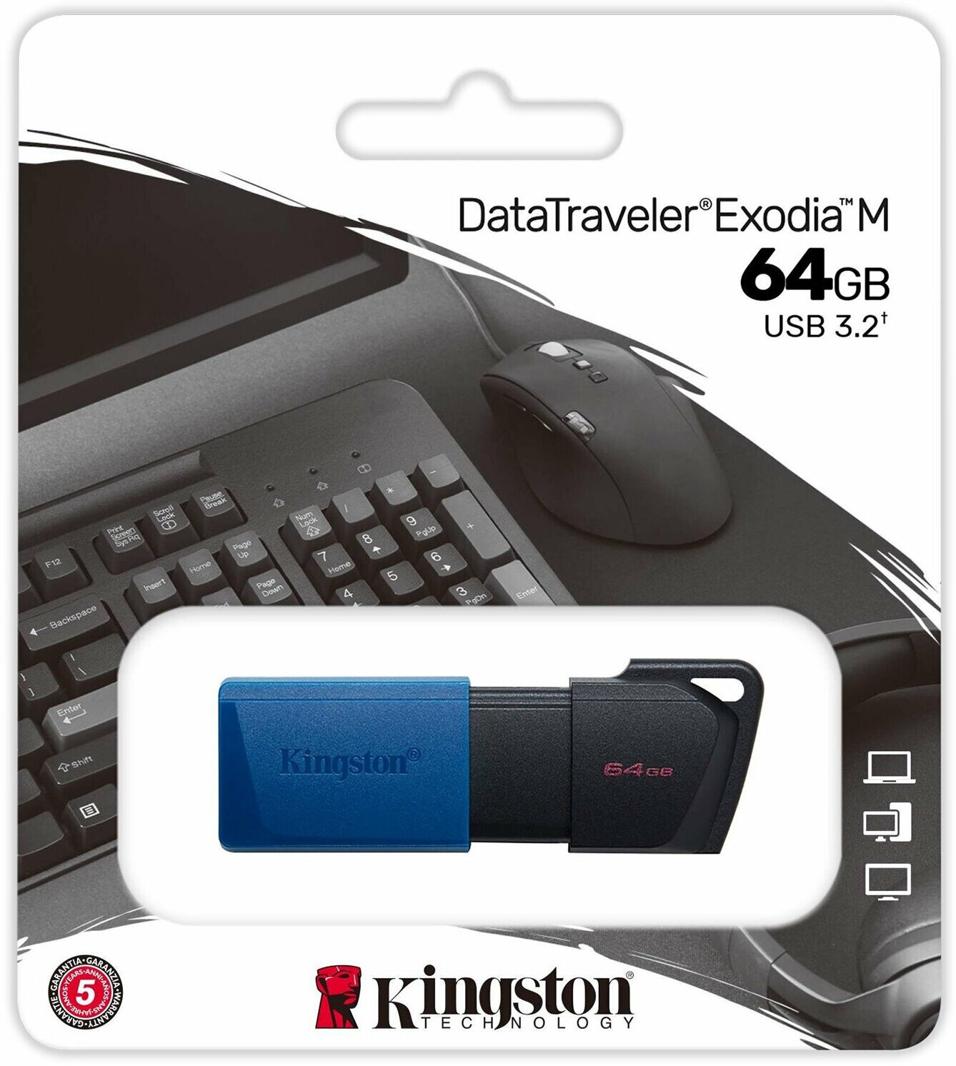 USB-флешки Флеш-диск 64 GB KINGSTON DataTraveler Exodia M, разъем USB 3.2, черный/синий, DTXM/64GB