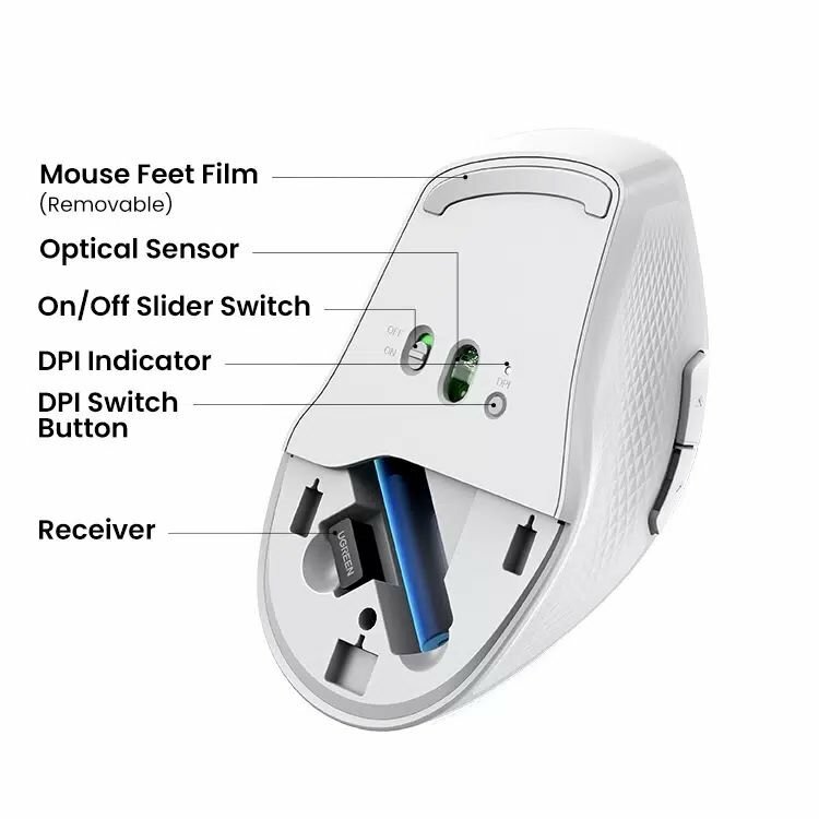 Мышки Мышь UGREEN MU101 (15805) Ergonomic Contoured-Shape Design Wireless Mouse 2.4 GHz&B.