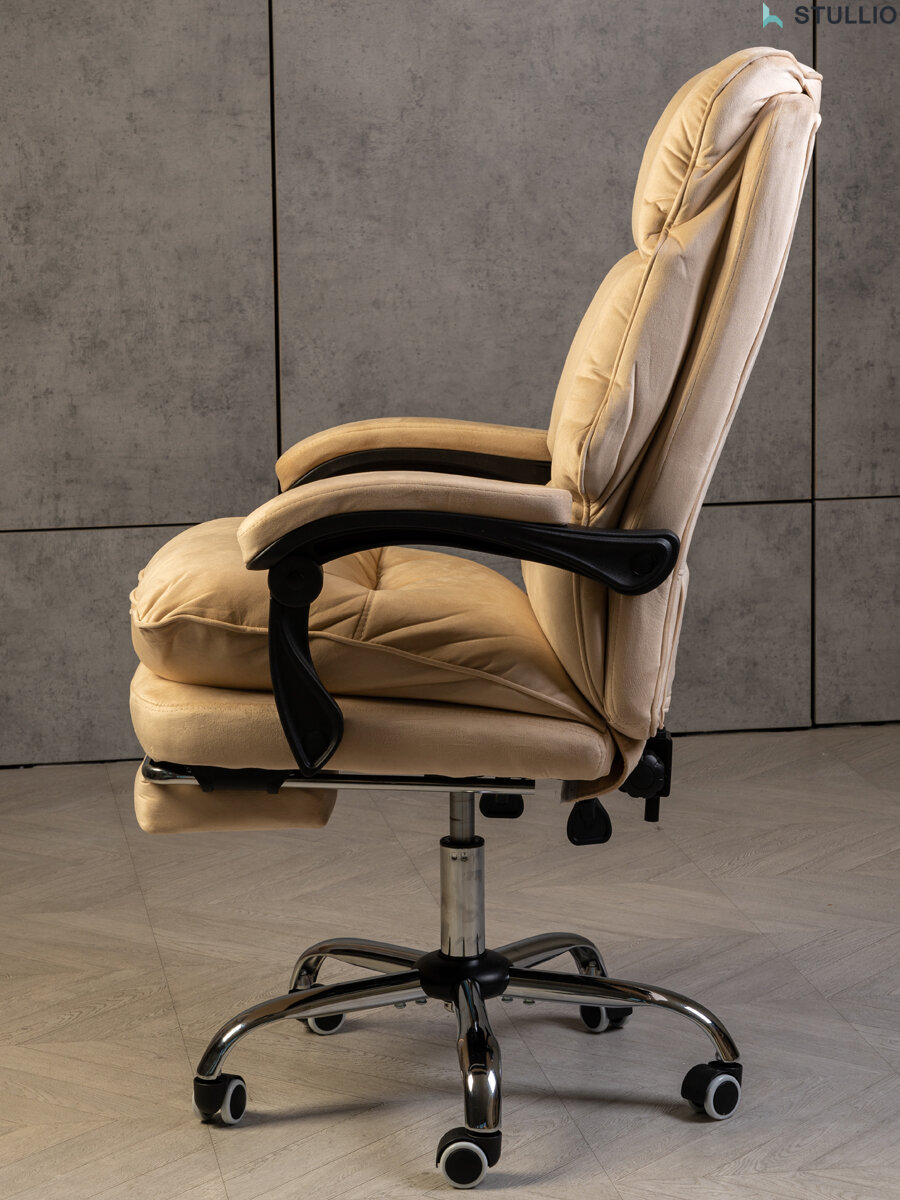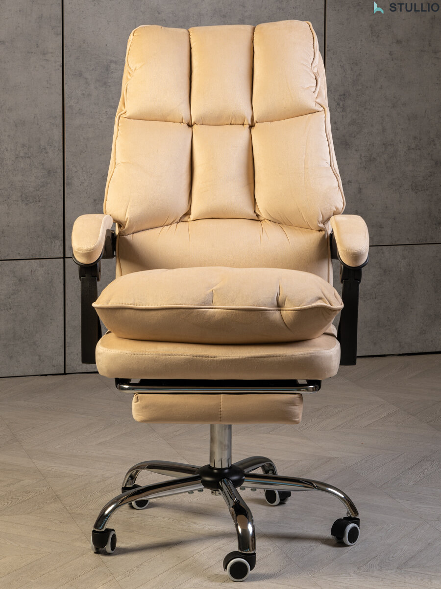 Компьютерные кресла Мягкое компьютерное кресло для дома и офиса, с подставкой для ног, из велюра, цвет бежевый