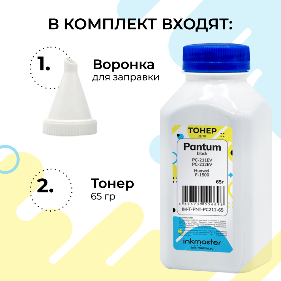 Картриджи Тонер для картриджей Huawei F-1500 (CD81-F) принтеров PixLab X1, также для Pantum PC-211EV/PC-212EV (тонер/воронка) 65г