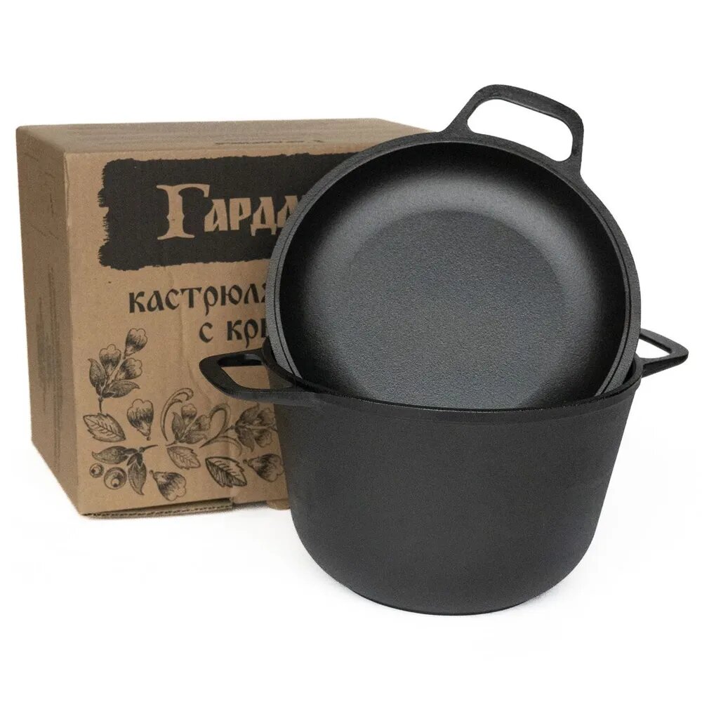 Кастрюли Кастрюля чугунная 6 л. с чугунной крышкой-сковородой Гардарика