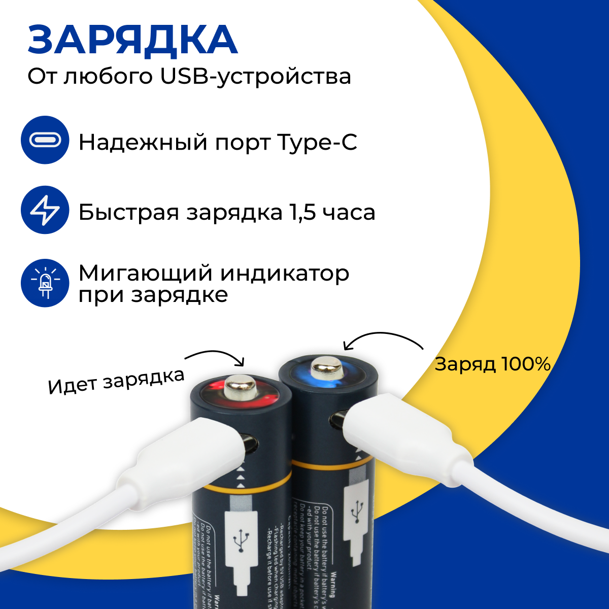 Аккумуляторы и батарейки Аккумуляторные батарейки AA 2600 мАч Type-C / Пальчиковые батарейки с разъемом Тайп Си / Заряжаемые батарейки 4 шт