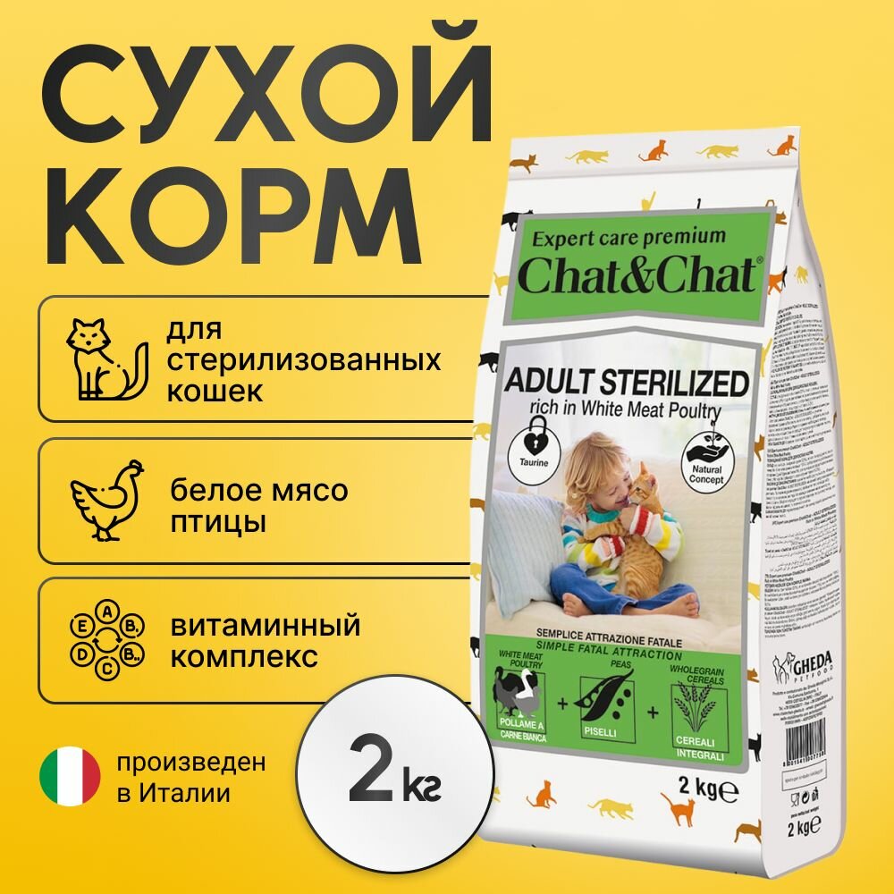 Корм для кошек Корм сухой Chat&Chat для стерилизованных кошек с белым мясом птитцы, 2кг