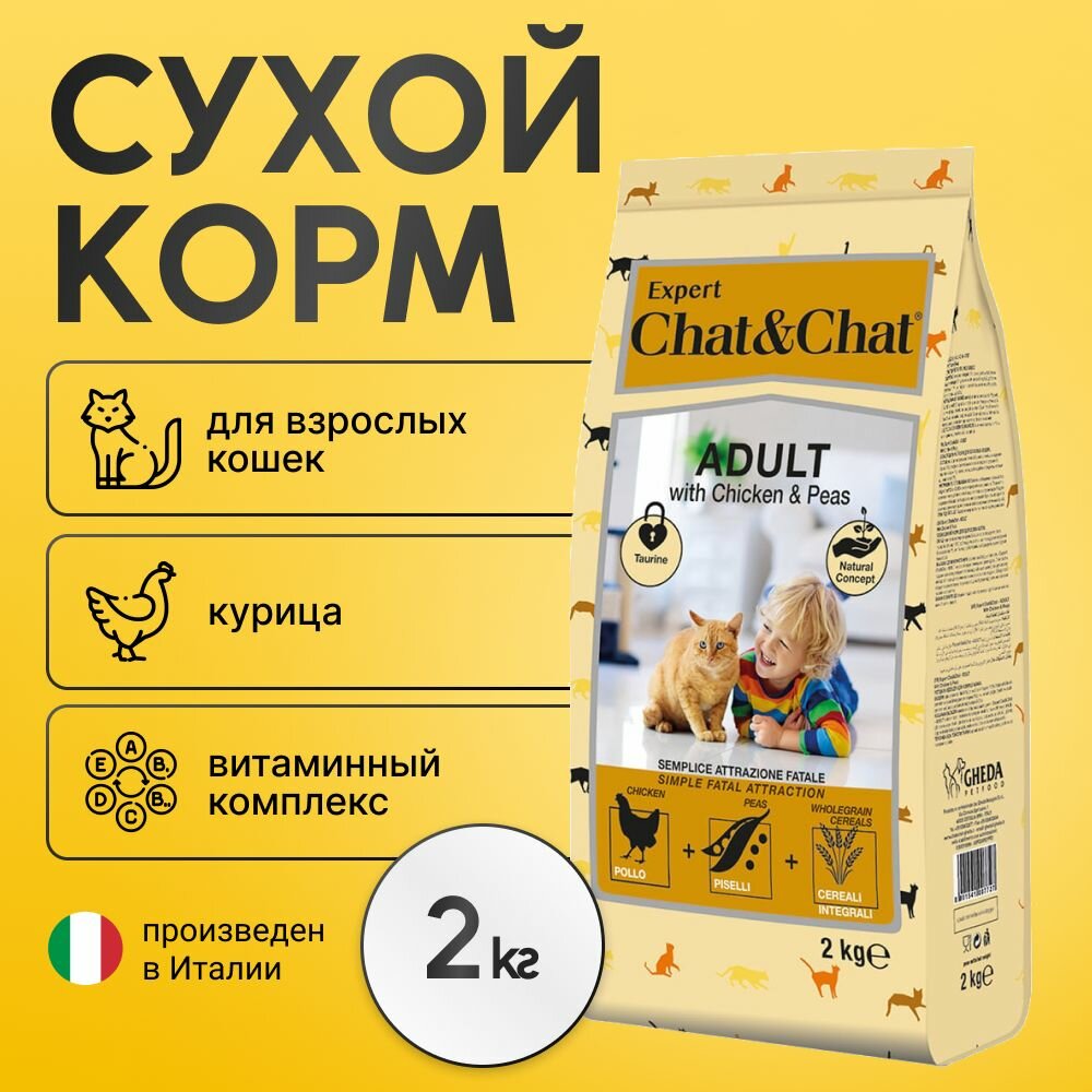 Корм для кошек Корм сухой Chat&Chat для кошек с курицей и горохом, 2кг